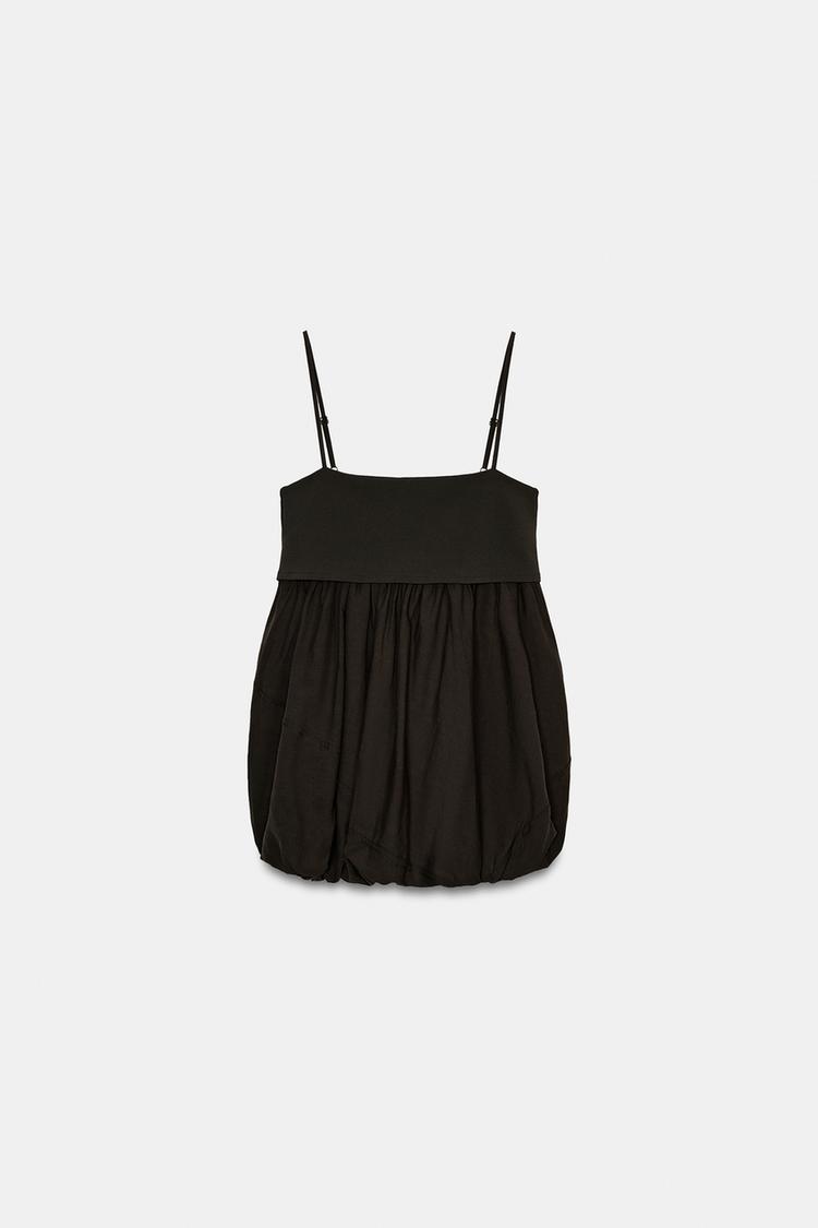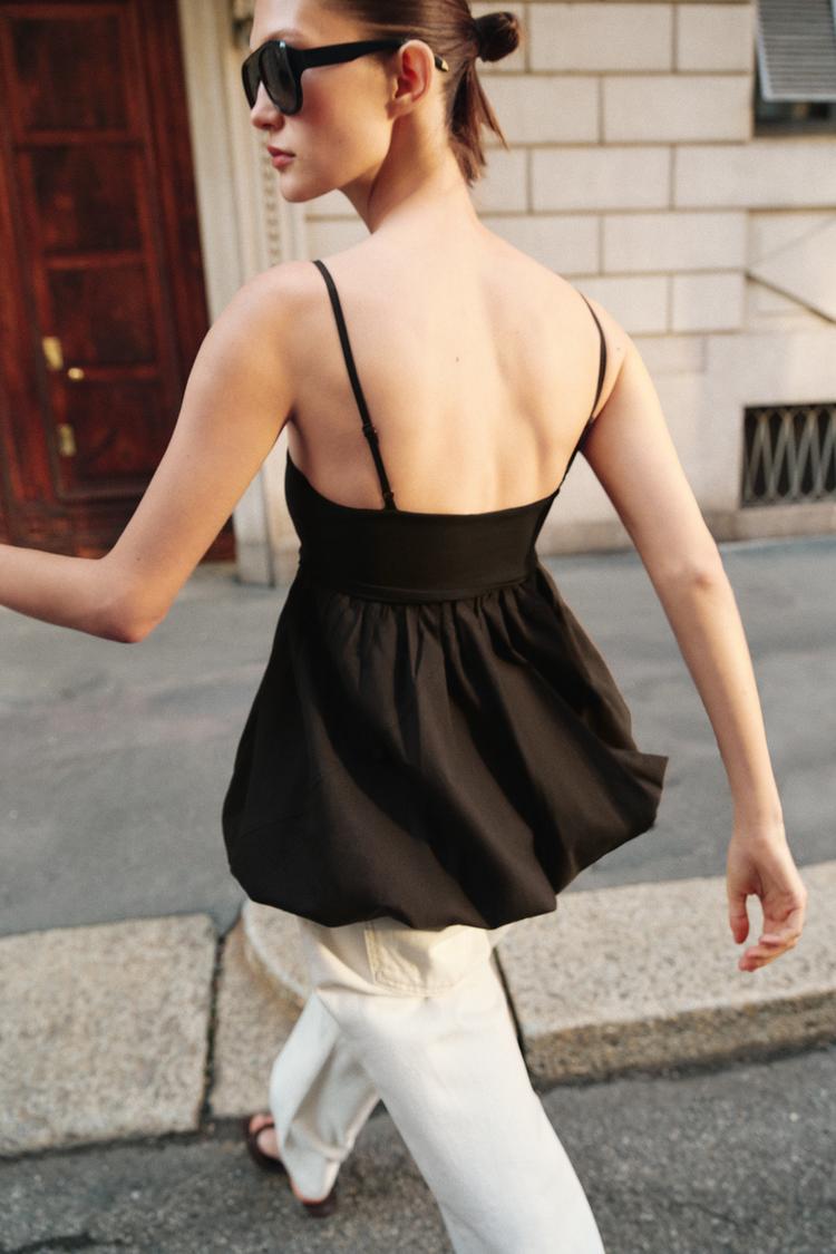 ZARA КОМБИНИРОВАННЫЙ ТОП ОБЪЕМНОГО КРОЯ, КОРИЧНЕВЫЙ