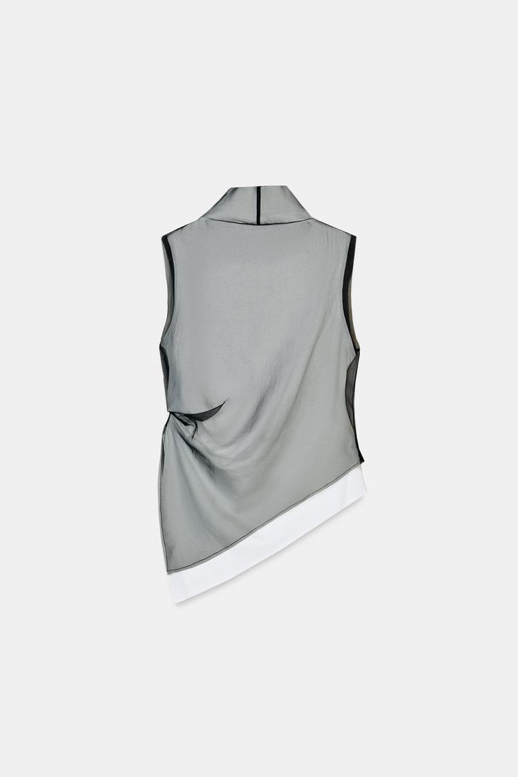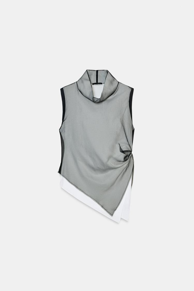 ZARA КОМБИНИРОВАННЫЙ ТОП С ДВОЙНЫМ ЭФФЕКТОМ, БЕЛЫЙ/ЧЕРНЫЙ