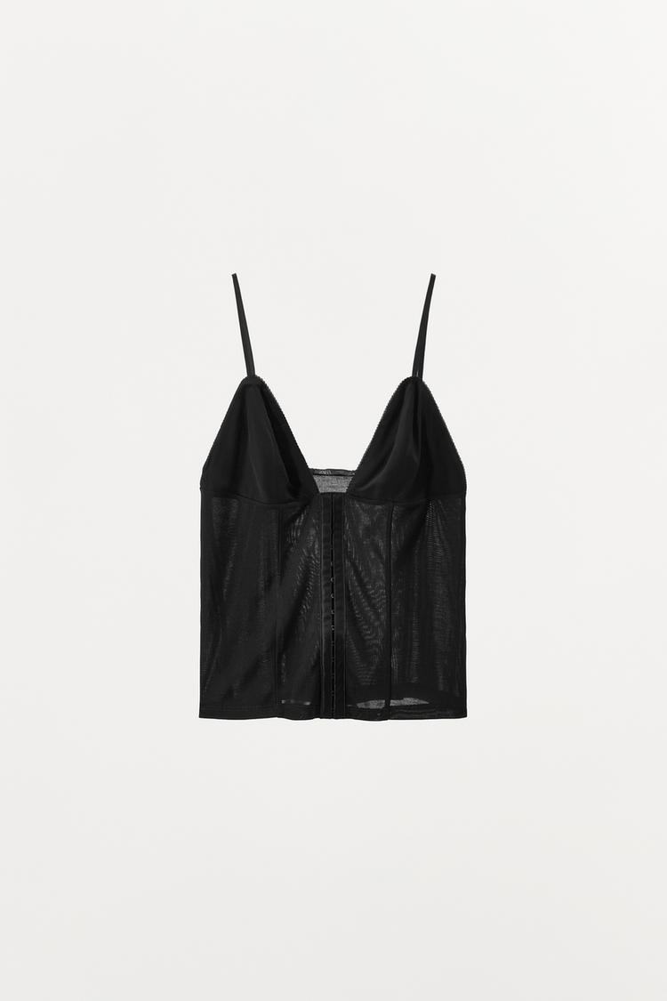 ZARA КОМБИНИРОВАННЫЙ ТОП С ВОЛНАМИ, ЧЕРНЫЙ