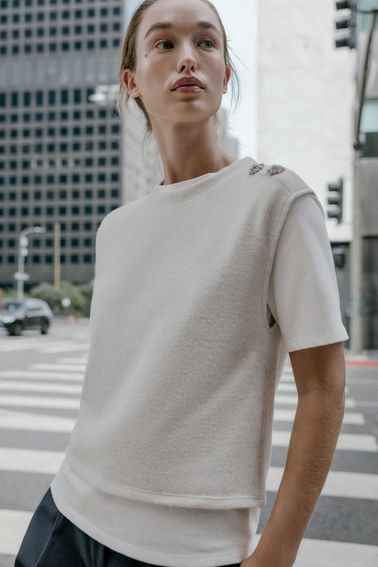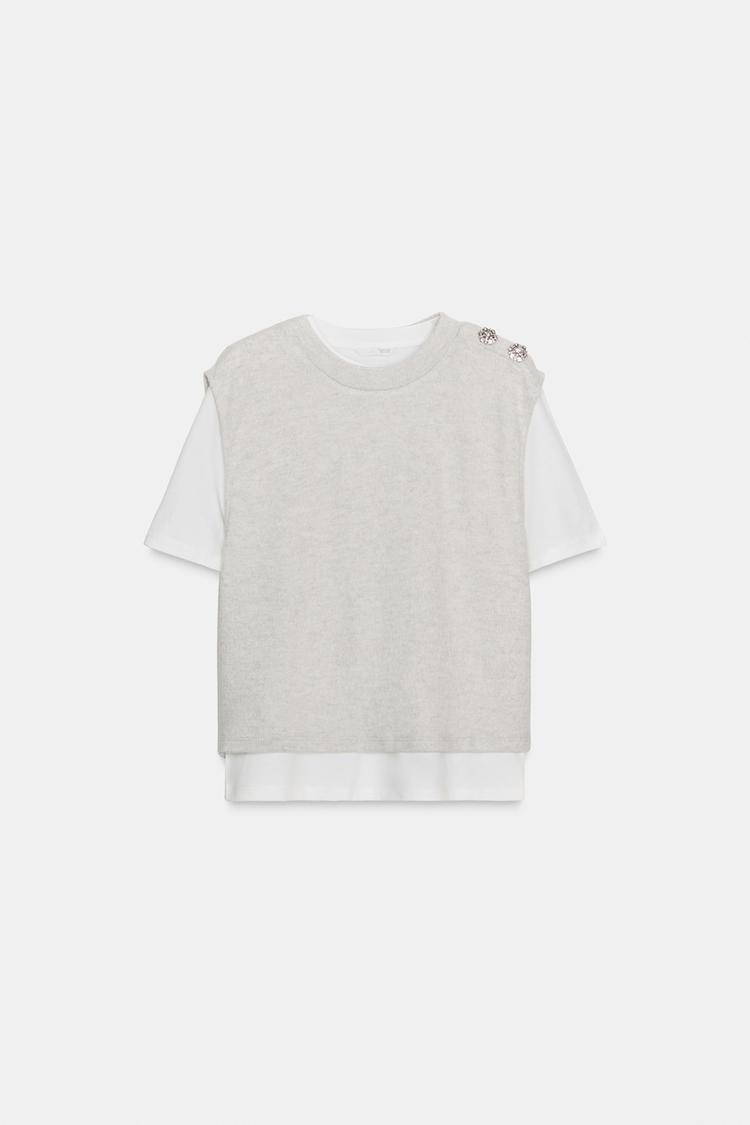 ZARA КОМБИНИРОВАННЫЙ ТОП СО СТРАЗАМИ, БЕЖЕВЫЙ