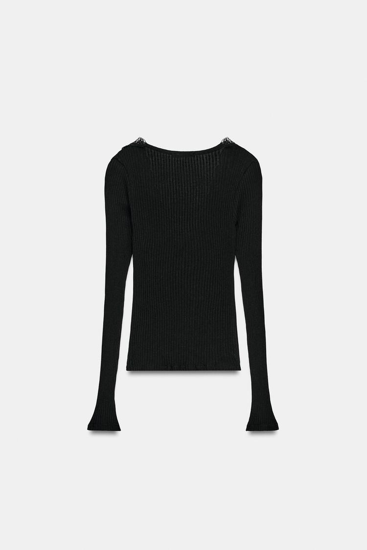 ZARA КОМБИНИРОВАННЫЙ ТОП В РУБЧИК, ЧЕРНЫЙ