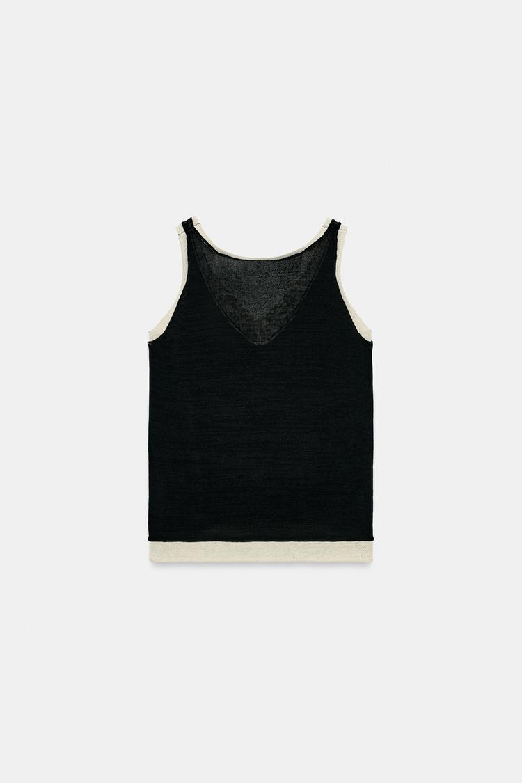 ZARA КОМБИНИРОВАННЫЙ ТРИКОТАЖНЫЙ ТОП, ЧЕРНЫЙ