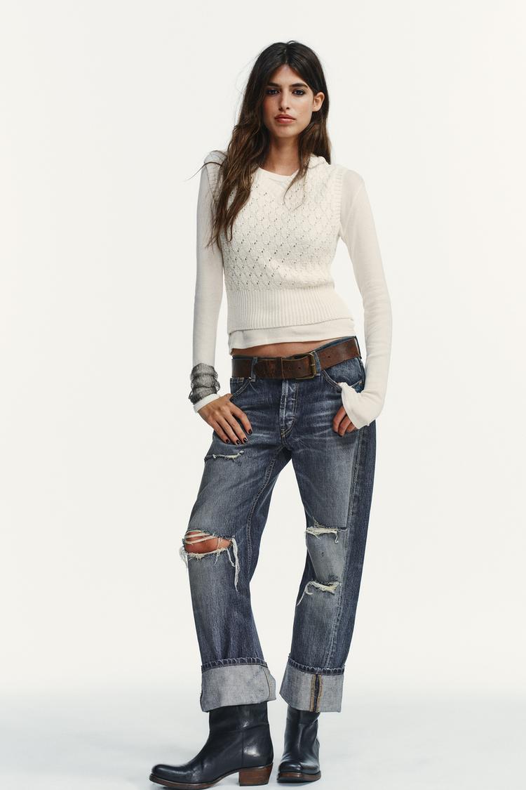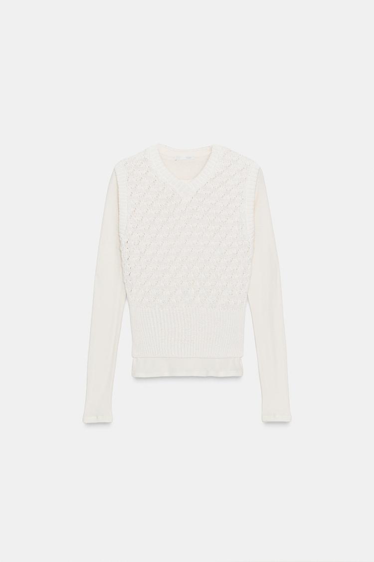 ZARA КОМБИНИРОВАННЫЙ ЖИЛЕТ, ЭКРЮ