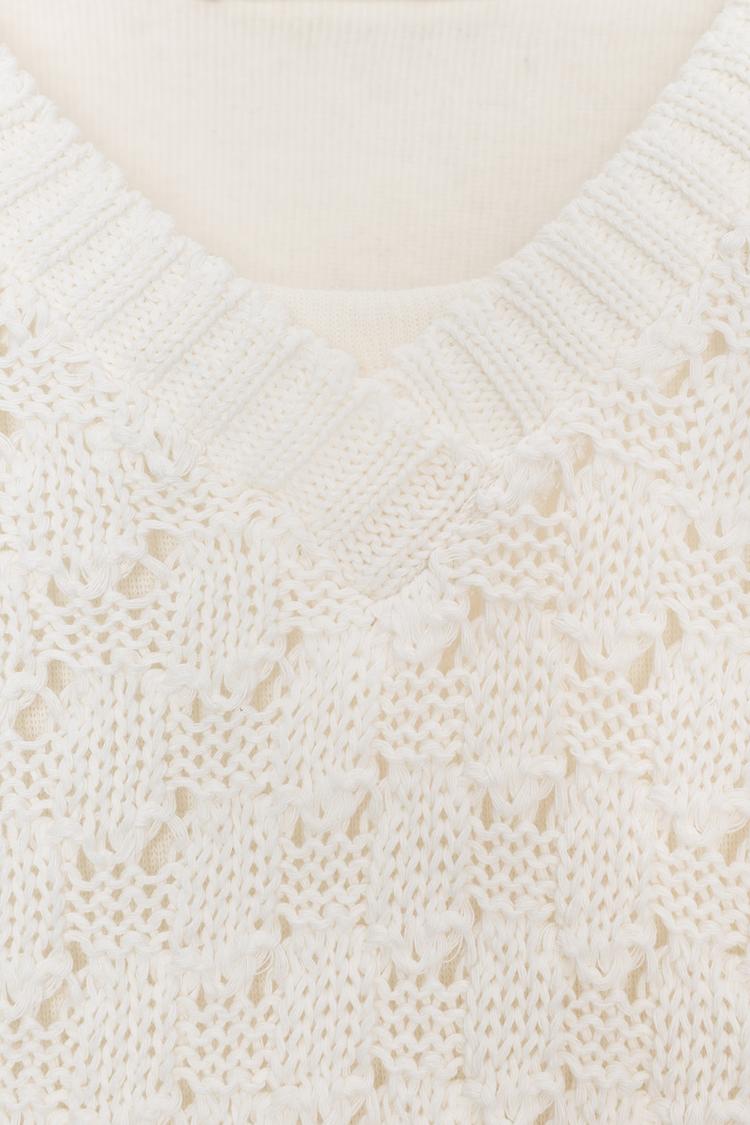 Джемпер с V-образным вырезом и длинными рукавами. Деталь в тон в виде наложенного трикотажного жилета.