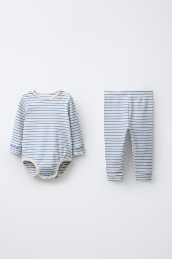 ZARA КОМПЛЕКТ БОДИ И ЛЕГИНСЫ В ПОЛОСКУ, ГОЛУБОЙ