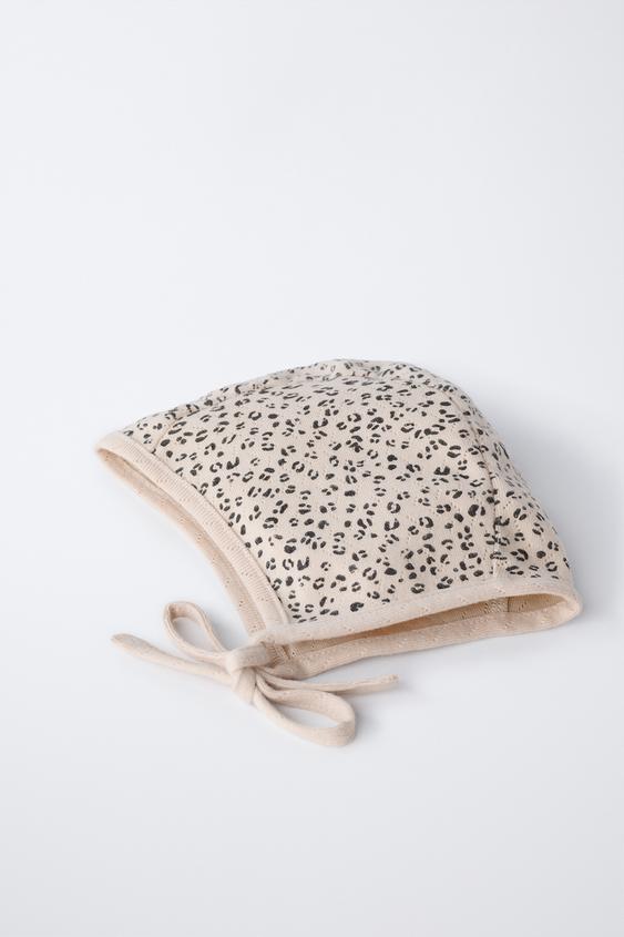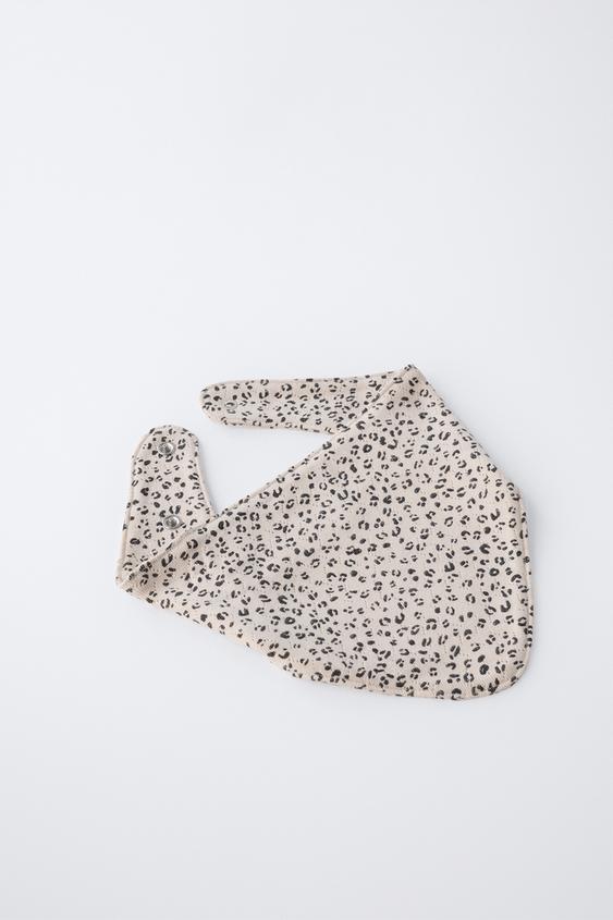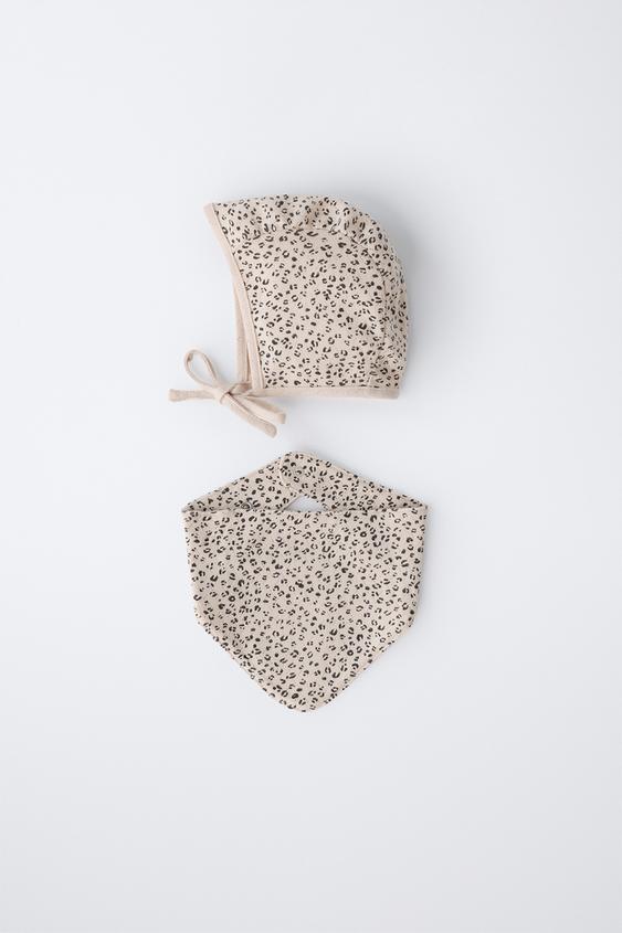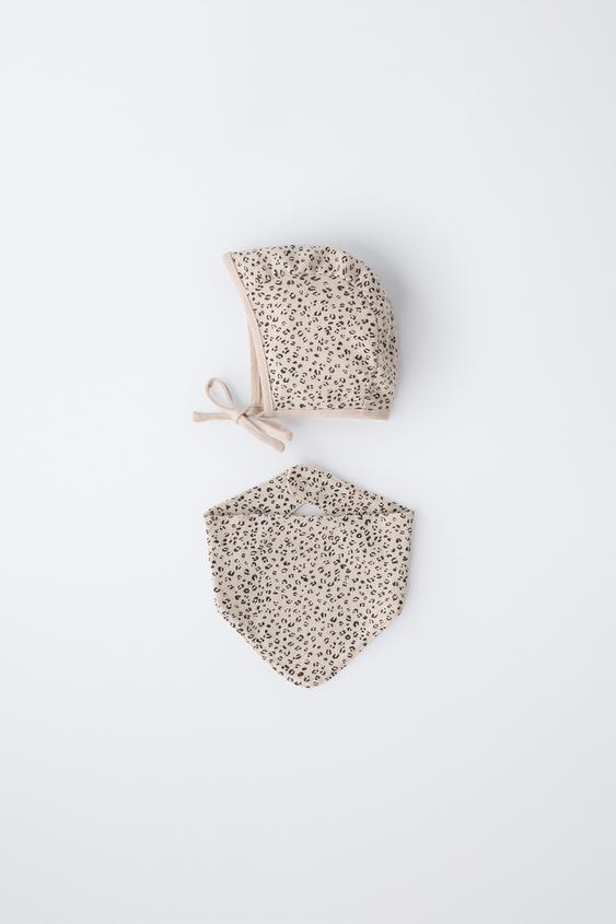 ZARA КОМПЛЕКТ ЧЕПЧИК И НАГРУДНИК С АНИМАЛИСТИЧНЫМ ПРИНТОМ, ЭКРЮ