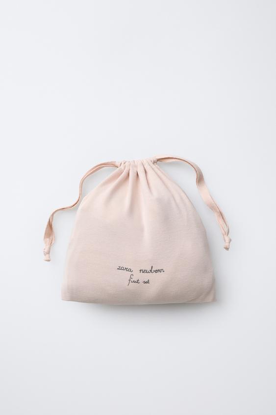 ZARA КОМПЛЕКТ ДЛЯ НОВОРОЖДЕННОГО И СУМОЧКА, БЕЖЕВО-РОЗОВЫЙ