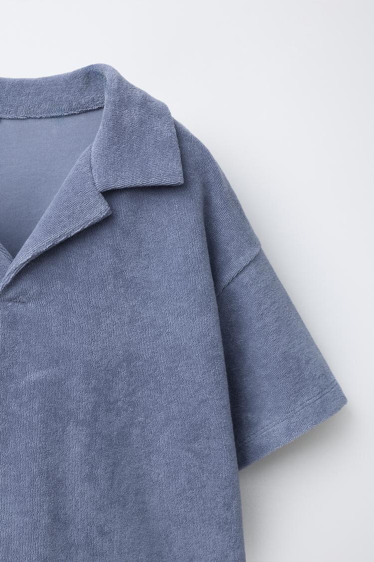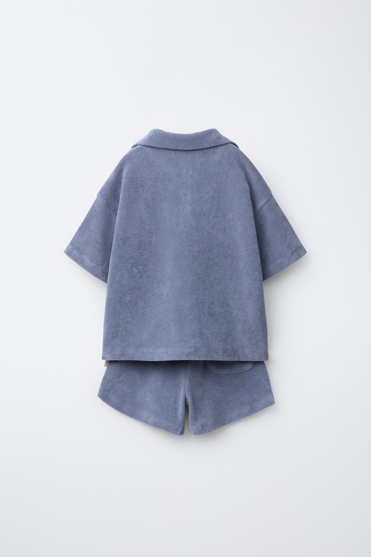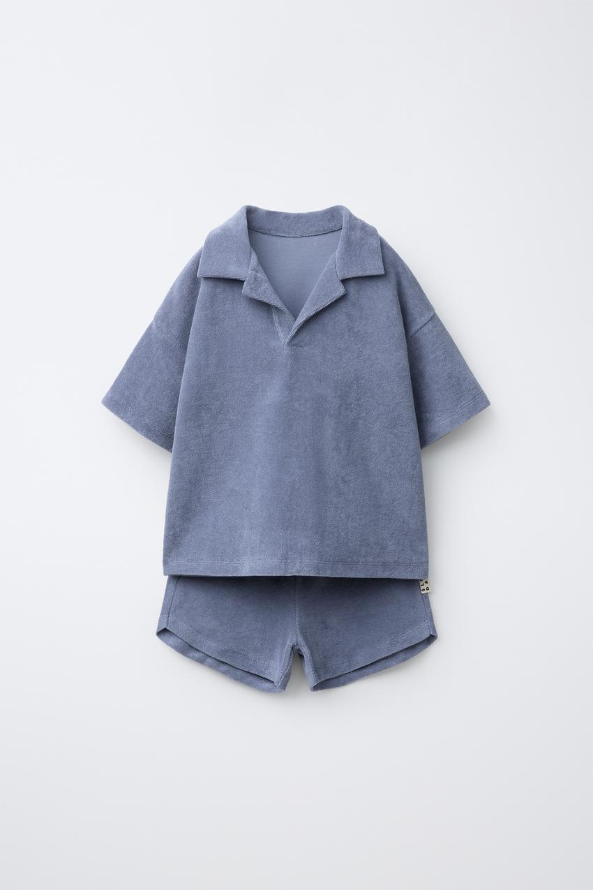 ZARA КОМПЛЕКТ ДЖОГГЕРЫ ПОЛО И ШОРТЫ ИЗ МАХРОВОЙ ТКАНИ, ВЫЦВЕТШИЙ СИНИЙ