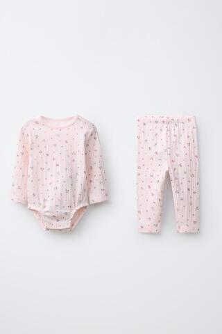 ZARA КОМПЛЕКТ ИЗ БОДИ И ЛЕГИНСОВ С ЦВЕТОЧНЫМ ПРИНТОМ, РОЗОВЫЙ