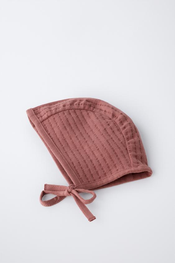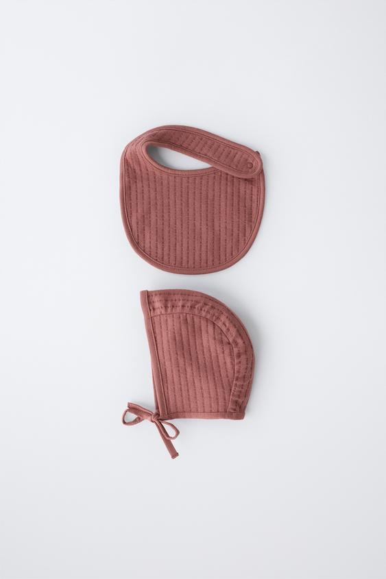 ZARA КОМПЛЕКТ ИЗ ЧЕПЧИКА И НАГРУДНИКА, МАЛИНОВЫЙ