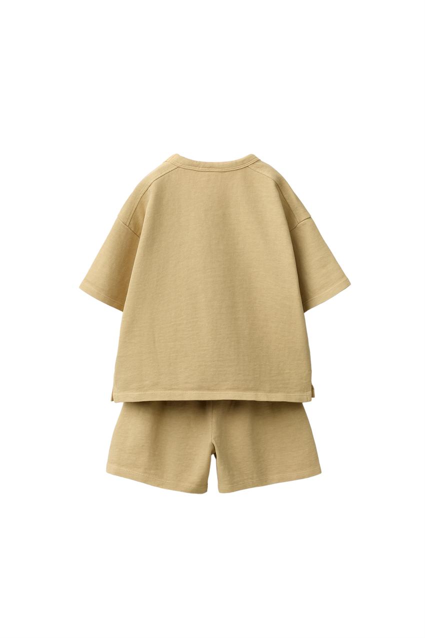 ZARA КОМПЛЕКТ ИЗ ФУТБОЛКИ И БЕРМУД, ГОРЧИЧНЫЙ