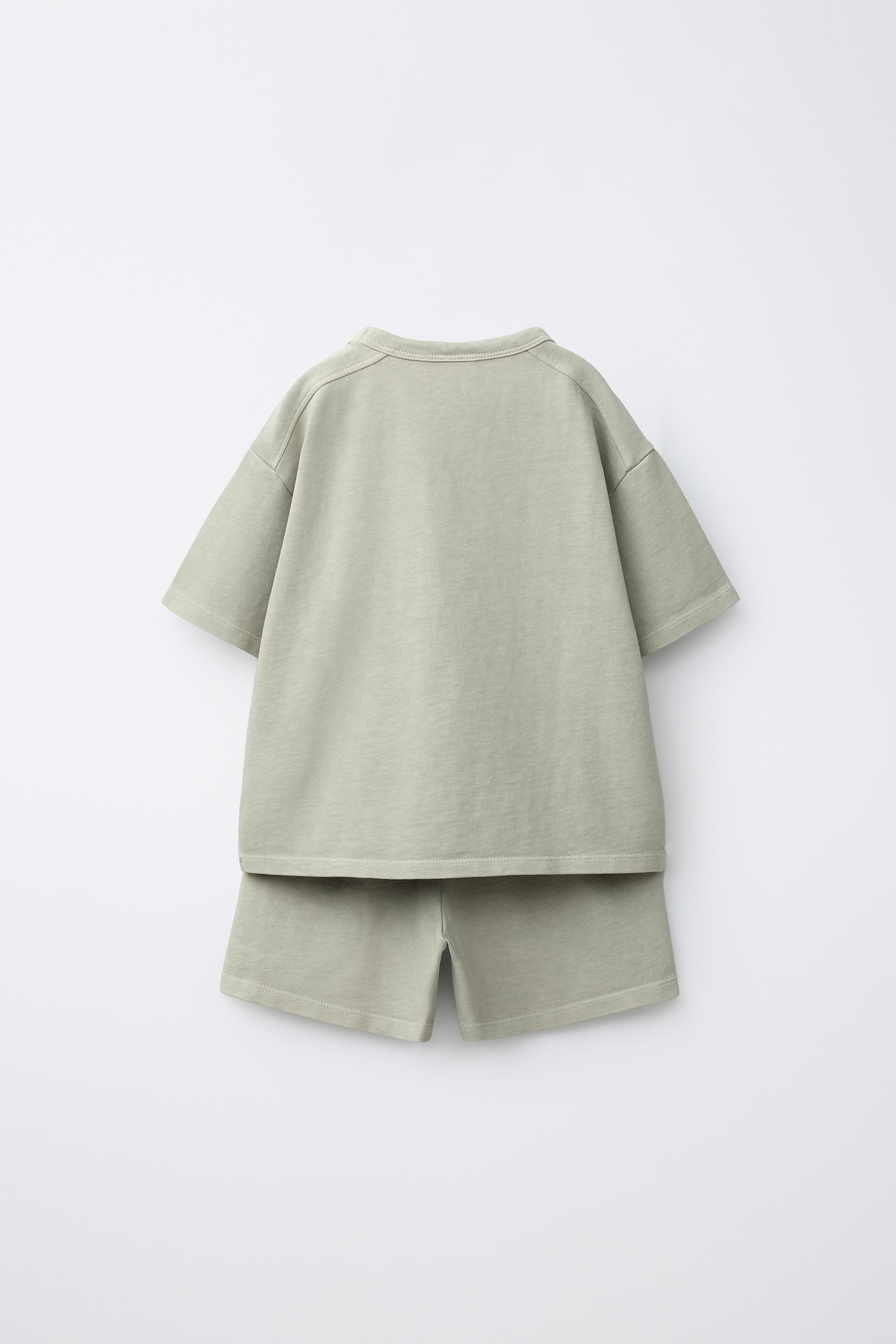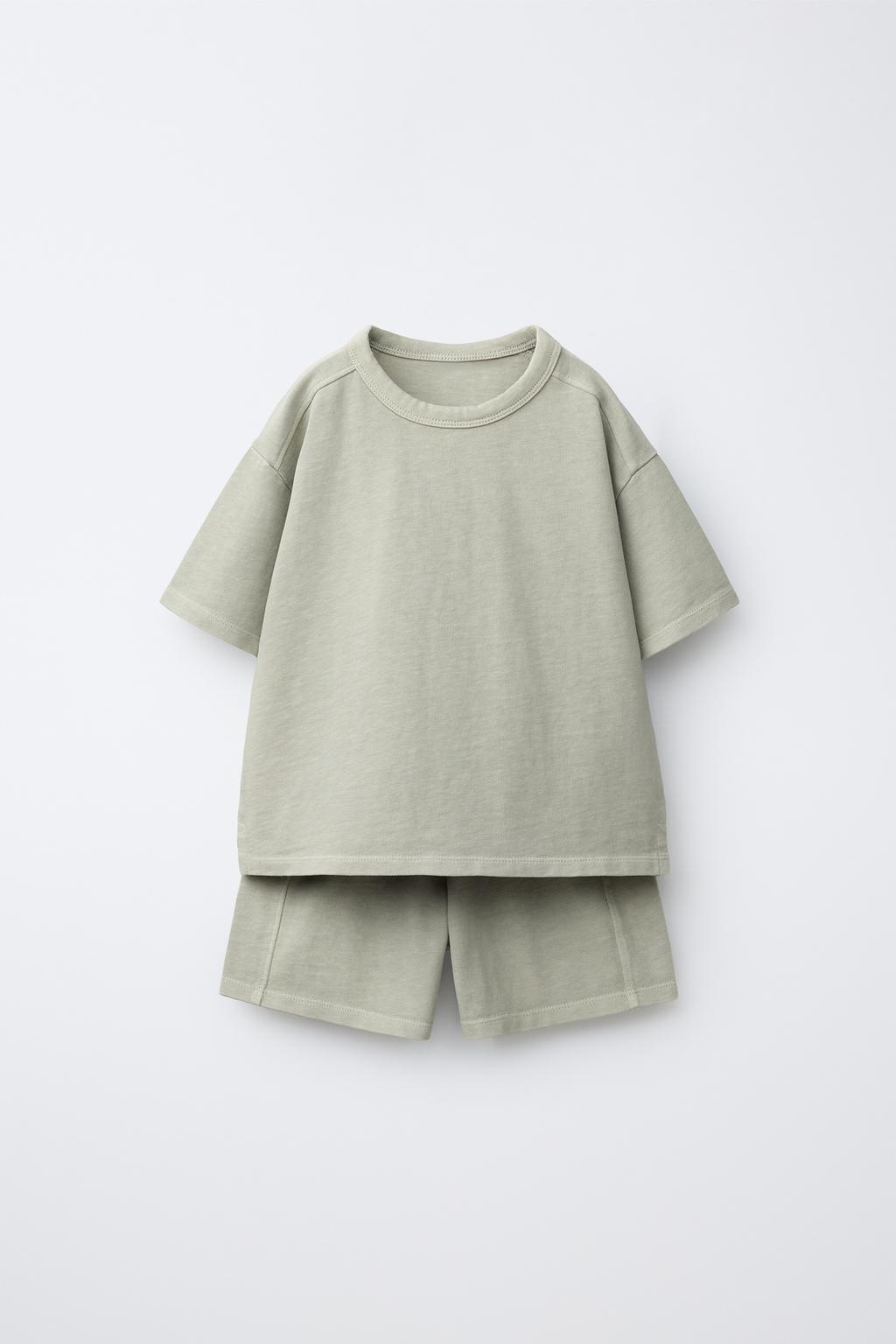 ZARA КОМПЛЕКТ ИЗ ФУТБОЛКИ И БЕРМУД, СВЕТЛО-ЗЕЛЕНЫЙ