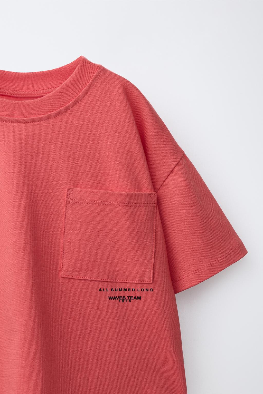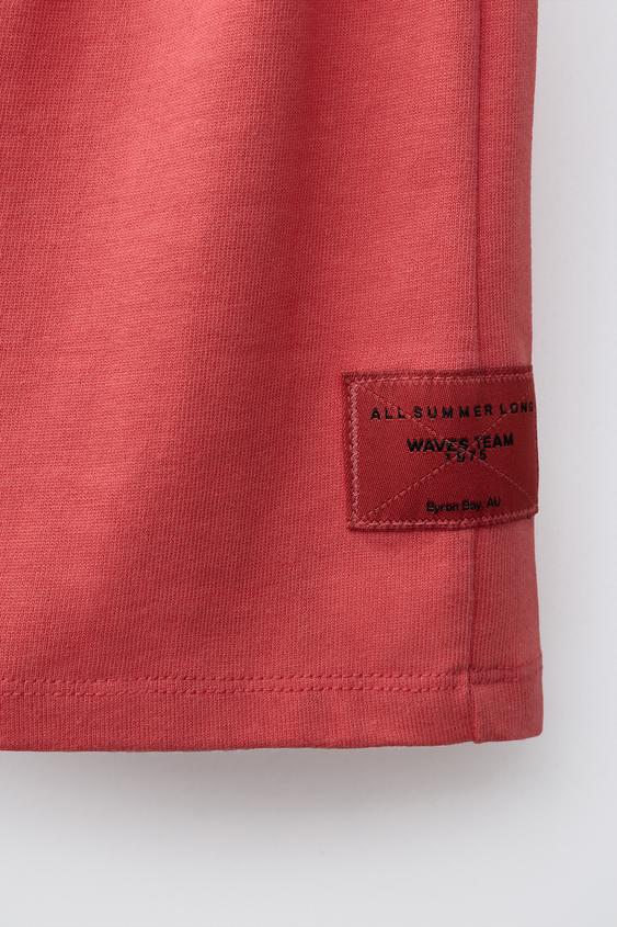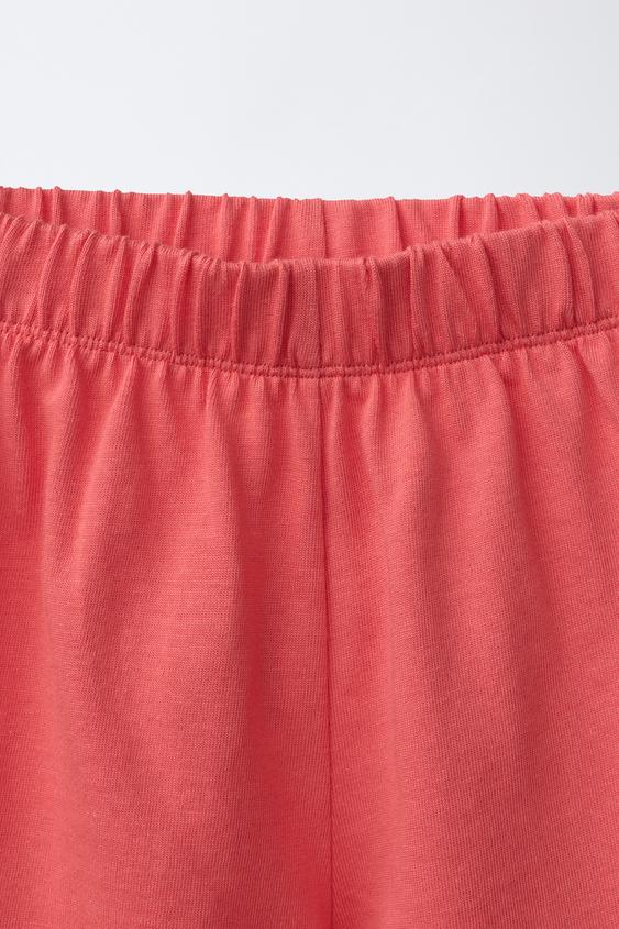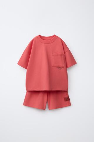 ZARA КОМПЛЕКТ ИЗ ФУТБОЛКИ И БЕРМУДОВ, КОРАЛЛОВО-КРАСНЫЙ