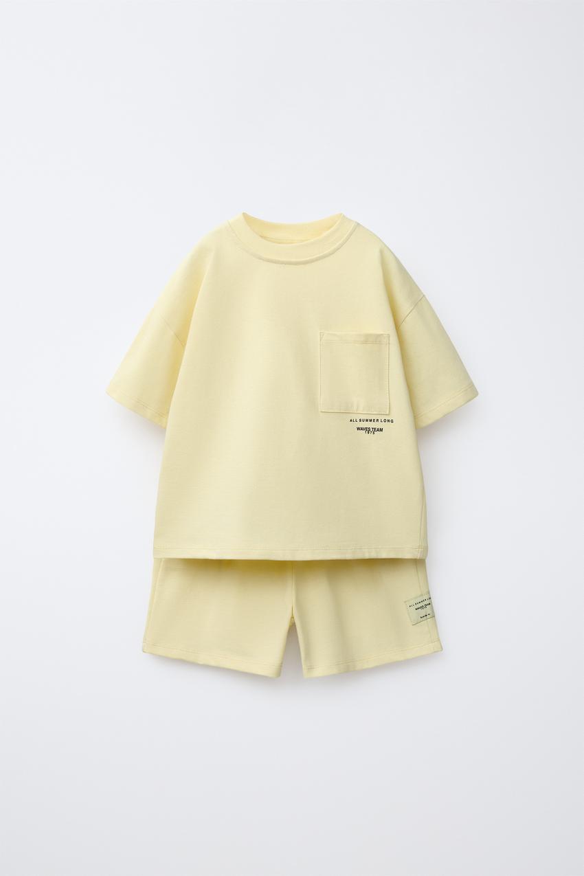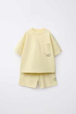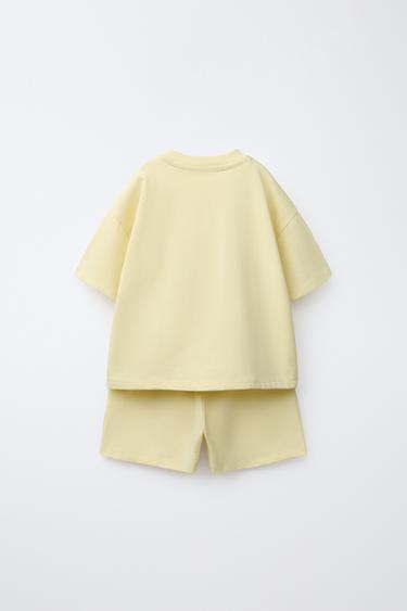ZARA КОМПЛЕКТ ИЗ ФУТБОЛКИ И БЕРМУДОВ, ЛАЙМОВЫЙ