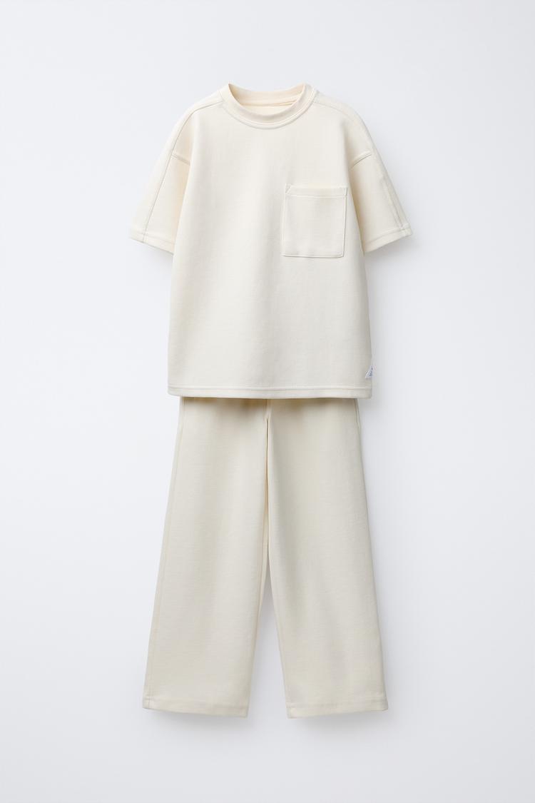 ZARA КОМПЛЕКТ ИЗ ФУТБОЛКИ И БРЮК, ЭКРЮ