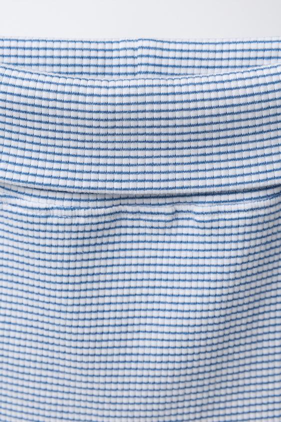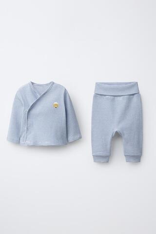 ZARA КОМПЛЕКТ ИЗ ФУТБОЛКИ И БРЮК-ШАРОВАРОВ В ПОЛОСКУ С ВЫШИВКОЙ ЦЫПЛЕНКА, МОРСКОЙ СИНИЙ
