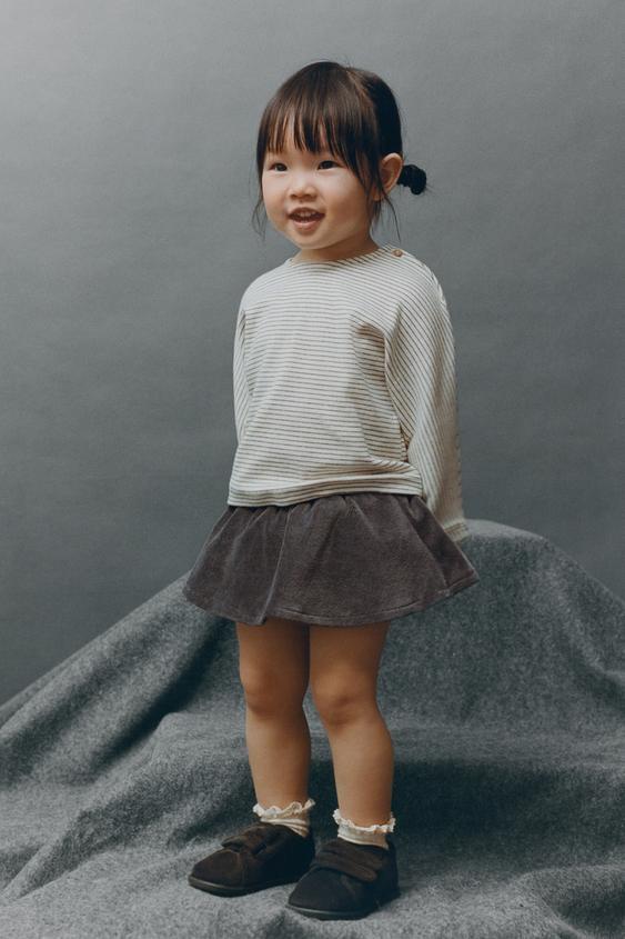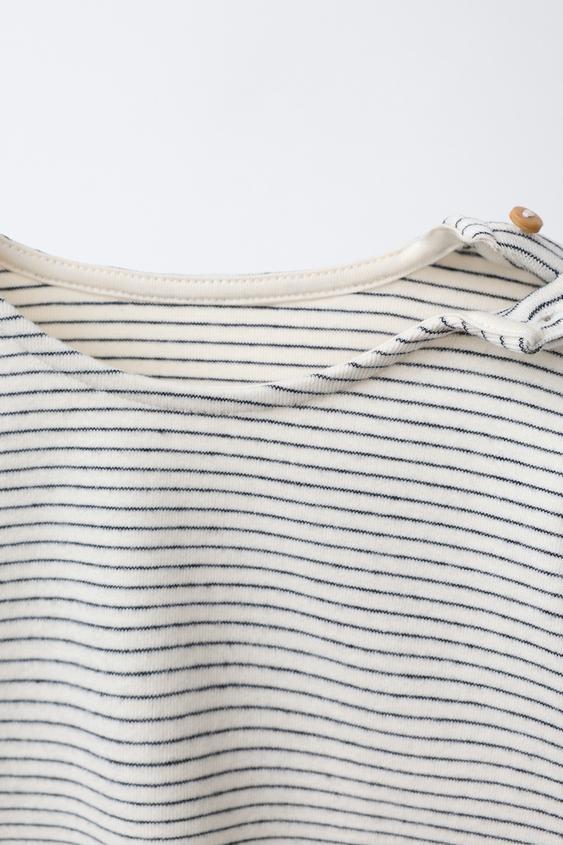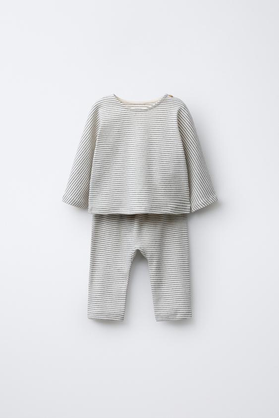 ZARA КОМПЛЕКТ ИЗ ФУТБОЛКИ И БРЮК В ПОЛОСКУ, ЭКРЮ/ЧЕРНЫЙ