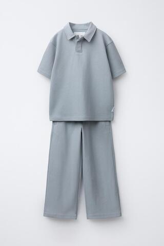 ZARA КОМПЛЕКТ ИЗ ФУТБОЛКИ И БРЮК, ЖЕМЧУЖНО-СЕРЫЙ
