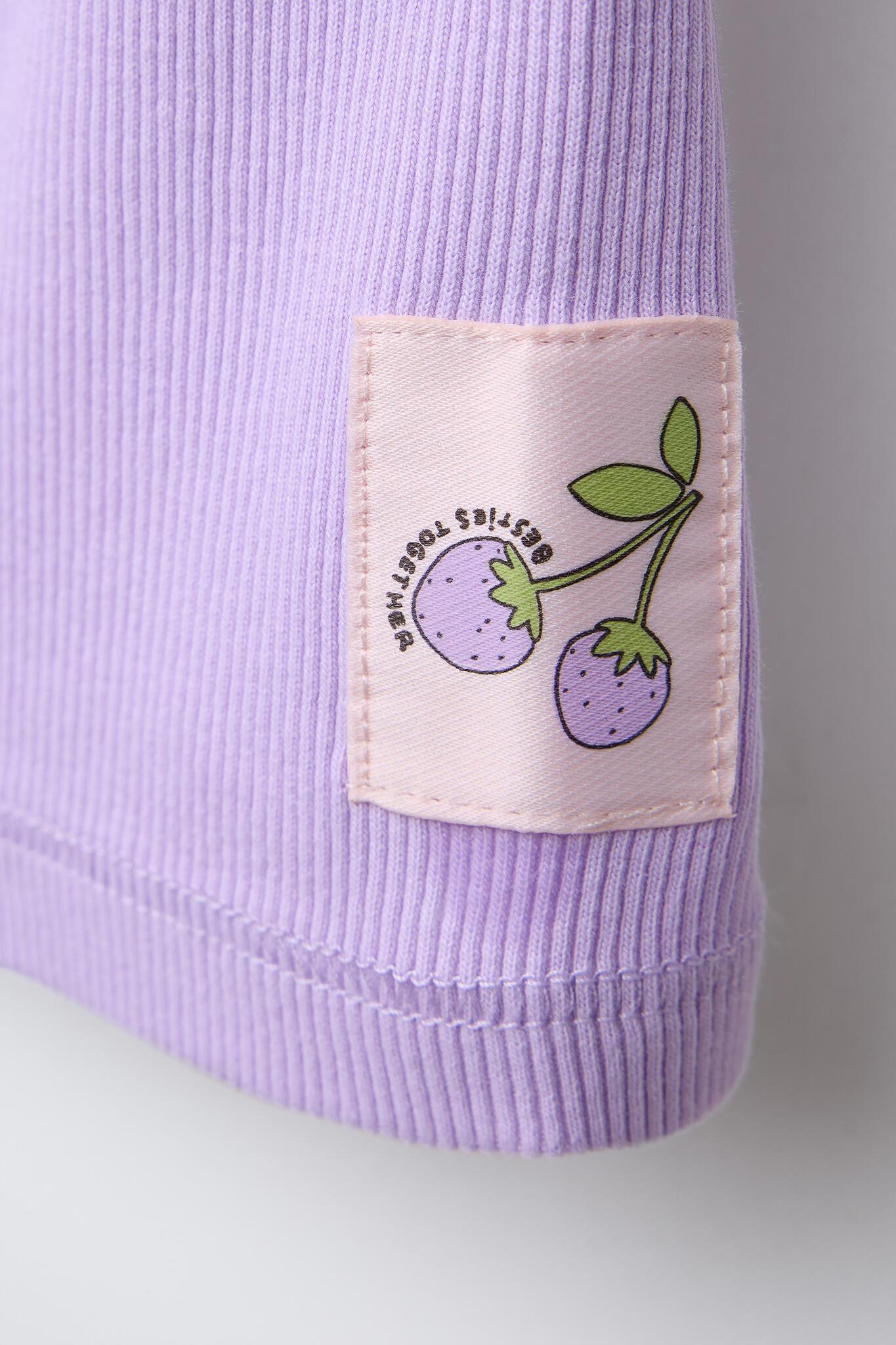 Комплект из двух предметов. Футболка с круглым вырезом и короткими рукавами. Принт «Фрукты». Легинсы-велосипедки в рубчик. Эластичный пояс, нашивка сбоку.