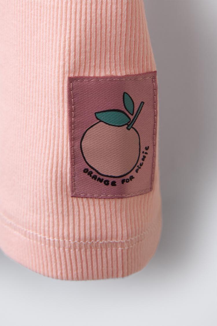 Комплект из двух предметов. Футболка с круглым вырезом и короткими рукавами. Принт «Фрукты». Легинсы-велосипедки в рубчик. Эластичный пояс, нашивка сбоку.