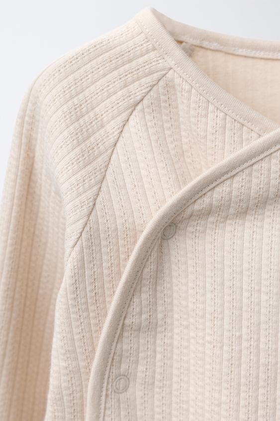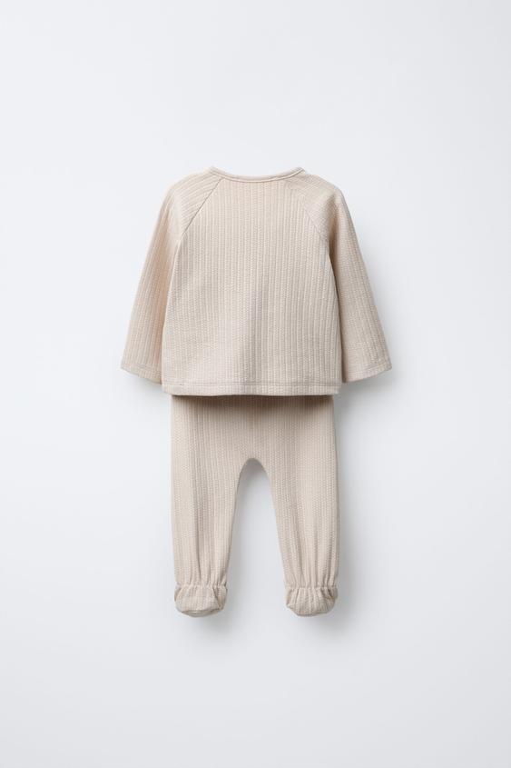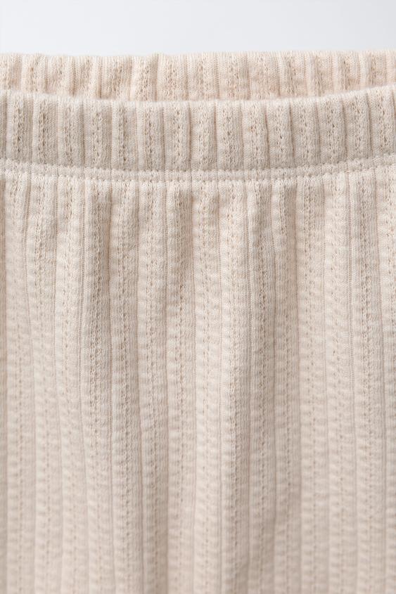 ZARA КОМПЛЕКТ ИЗ ФУТБОЛКИ И ЛЕГИНСОВ С РЕЛЬЕФНЫМ УЗОРОМ, ПЕСОЧНЫЙ