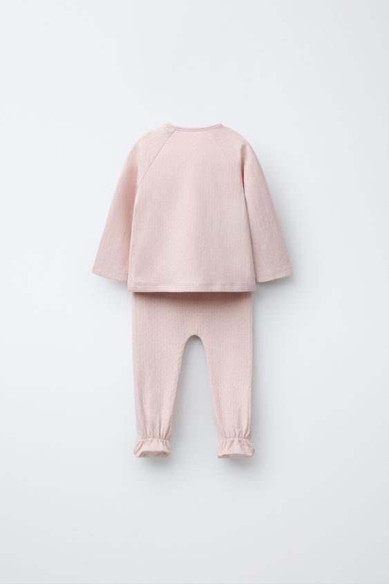 ZARA КОМПЛЕКТ ИЗ ФУТБОЛКИ И ЛЕГИНСОВ С РЕЛЬЕФНЫМ УЗОРОМ, ЦВЕТ РОЗОВОГО ДЕРЕВА