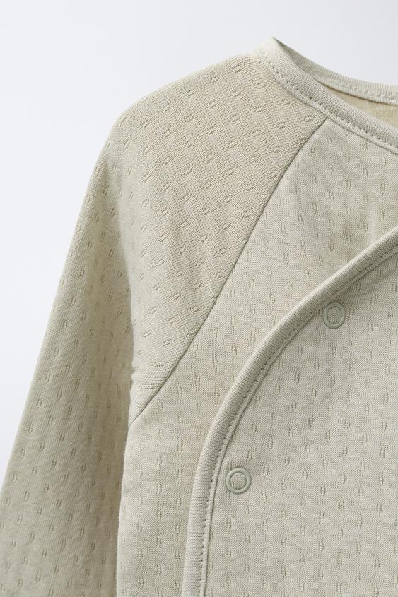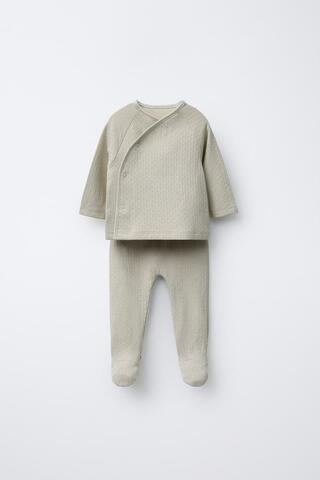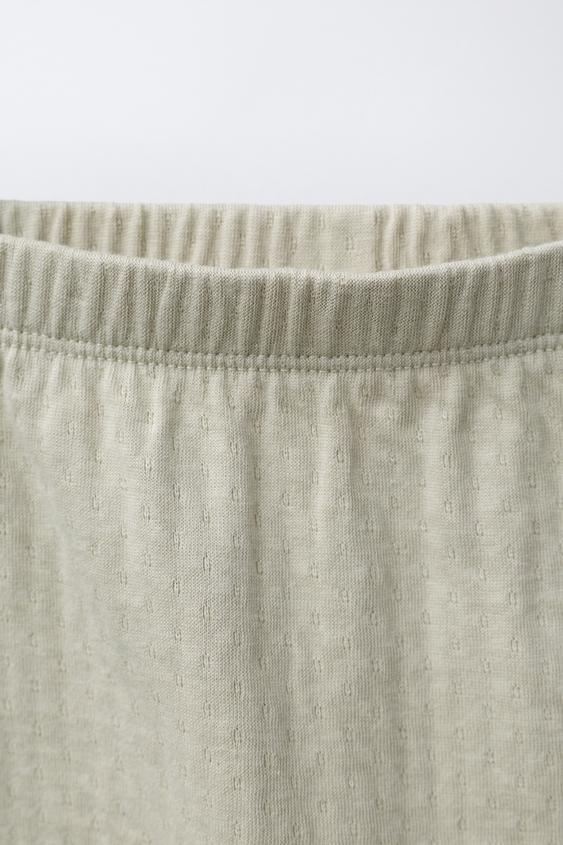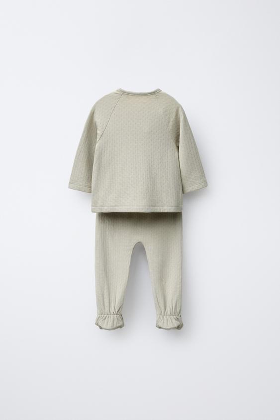 ZARA КОМПЛЕКТ ИЗ ФУТБОЛКИ И ЛЕГИНСОВ С РЕЛЬЕФНЫМ УЗОРОМ, ЗЕЛЕНОВАТЫЙ