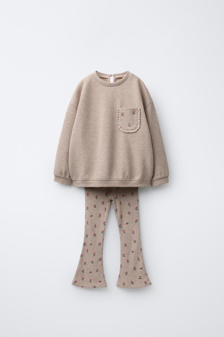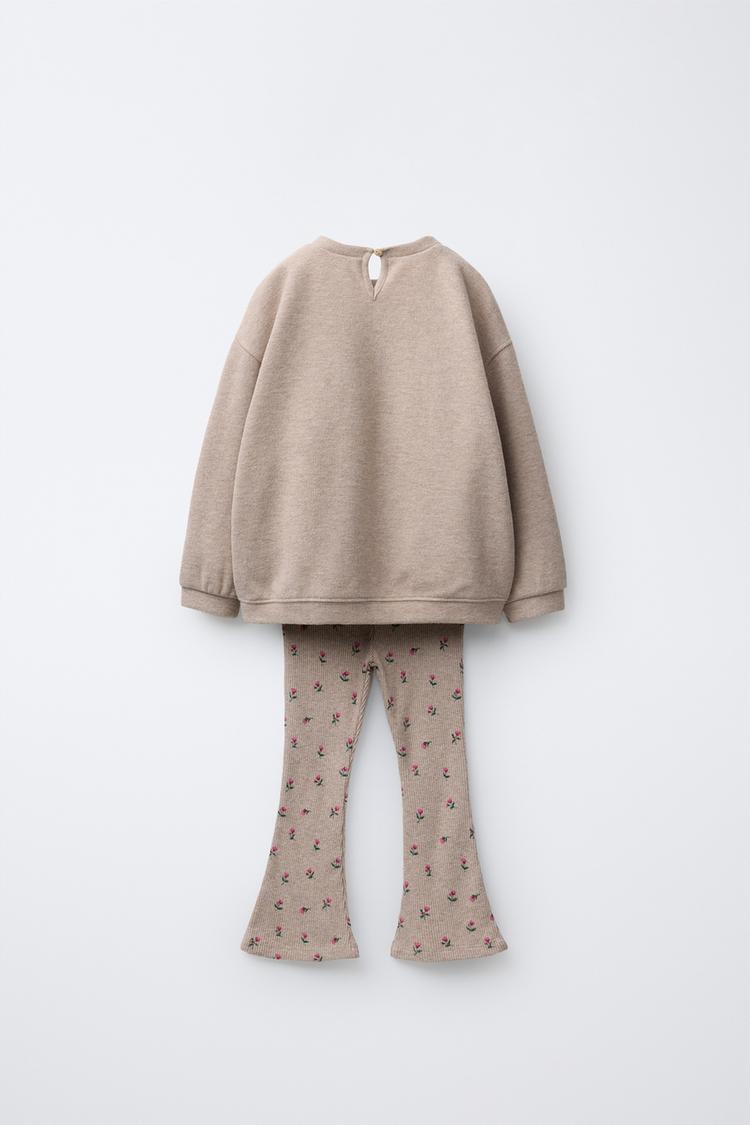 ZARA КОМПЛЕКТ ИЗ ФУТБОЛКИ И РАСКЛЕШЕННЫХ ЛЕГИНСОВ ИЗ МЯГКОЙ ТКАНИ, ПЕСОЧНЫЙ МЕЛАНЖ