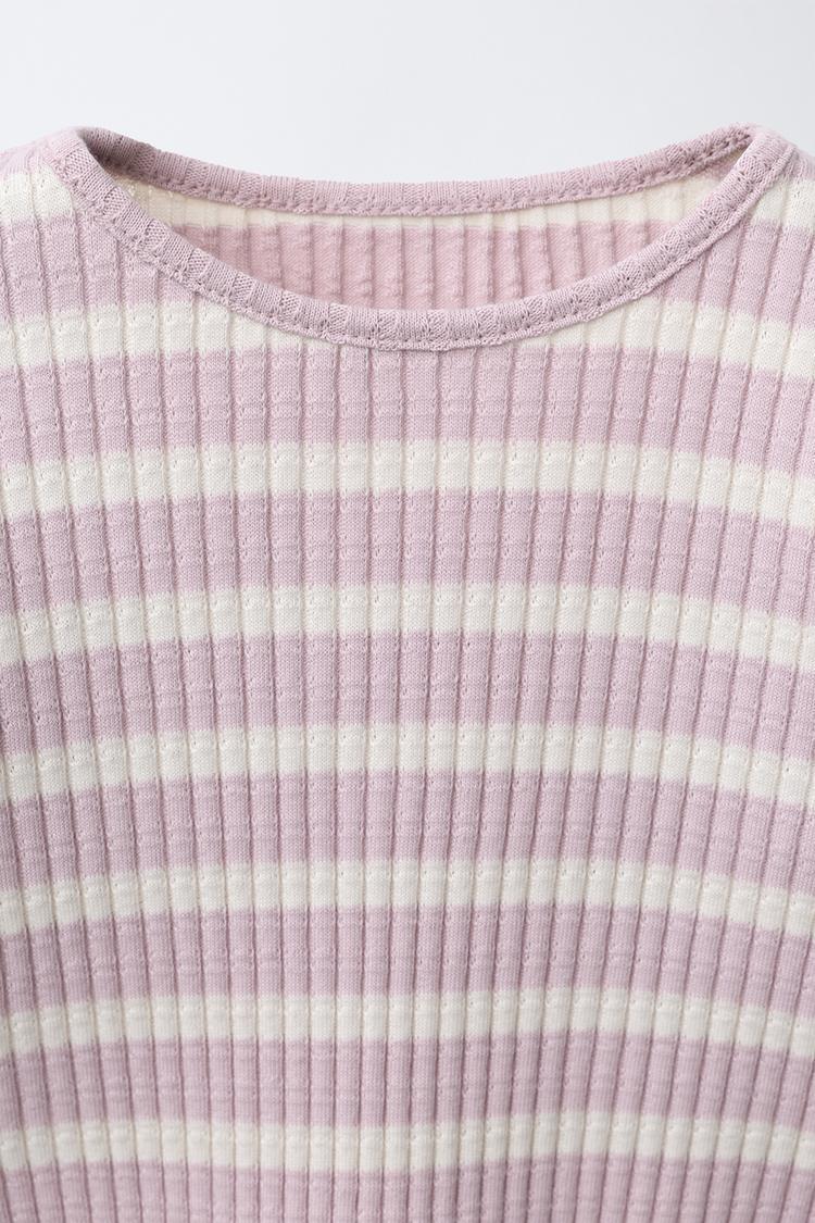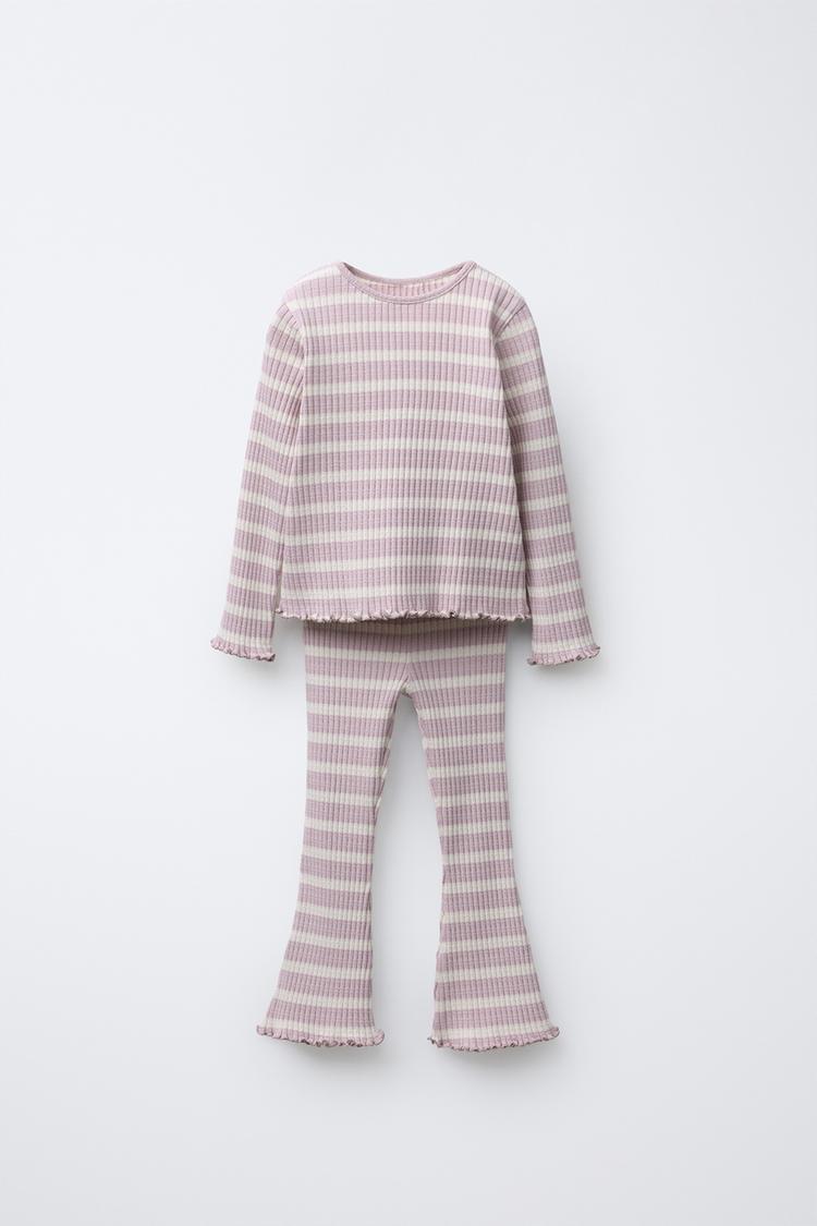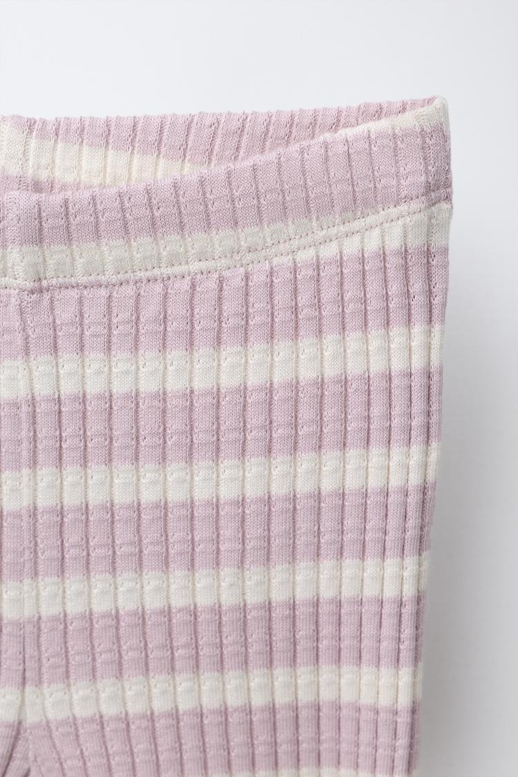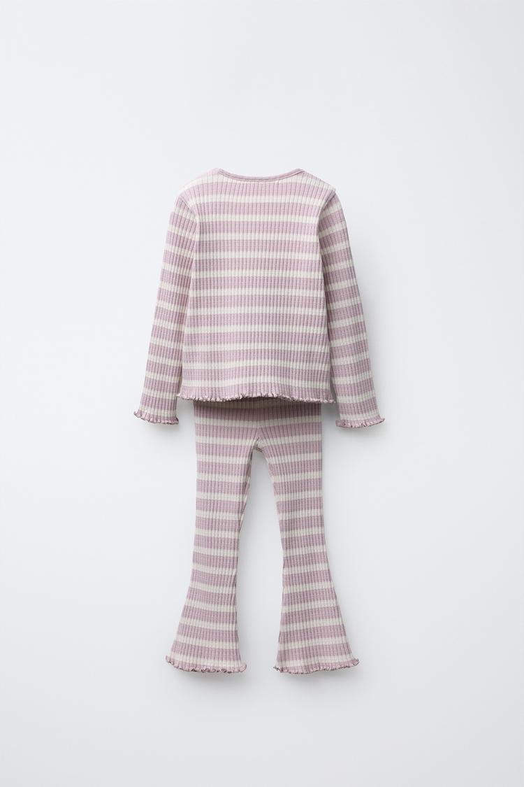 ZARA КОМПЛЕКТ ИЗ ФУТБОЛКИ И РАСКЛЕШЕННЫХ ЛЕГИНСОВ В РУБЧИК В ПОЛОСКУ, СВЕТЛАЯ МАЛЬВА