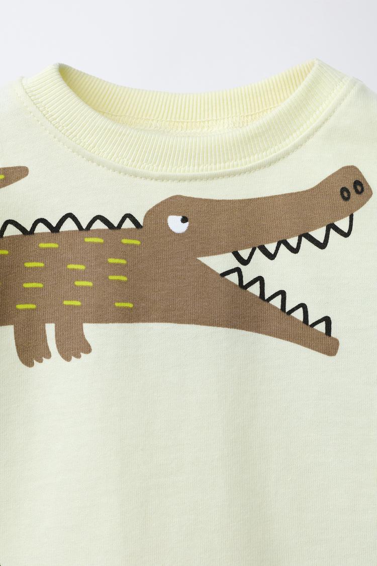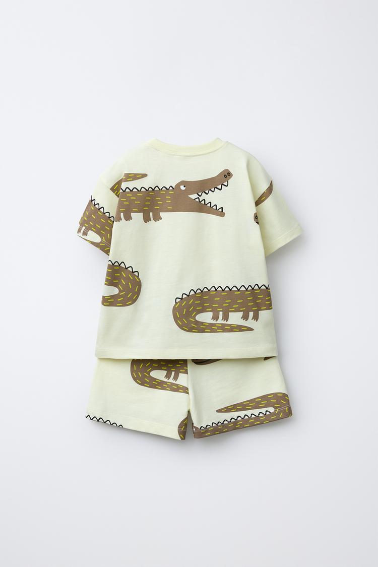 ZARA КОМПЛЕКТ ИЗ ФУТБОЛКИ И ШОРТ С ПРИНТОМ «КРОКОДИЛЫ», ЖЕЛТЫЙ