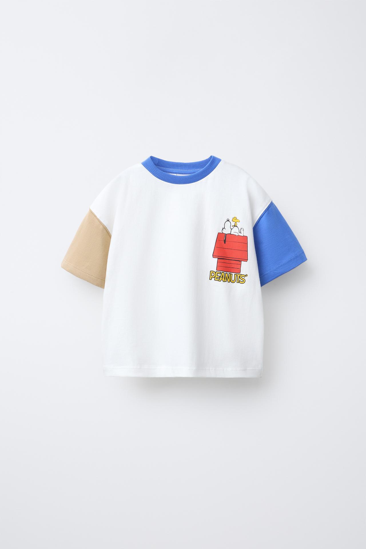 ZARA КОМПЛЕКТ ИЗ ФУТБОЛКИ И ШОРТОВ-БЕРМУДОВ С ПРИНТОМ SNOOPY PEANUTS™, ЗЕЛЕНЫЙ/ЭКРЮ