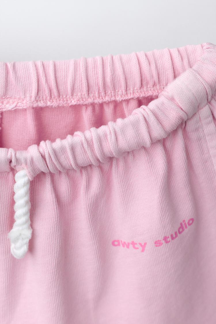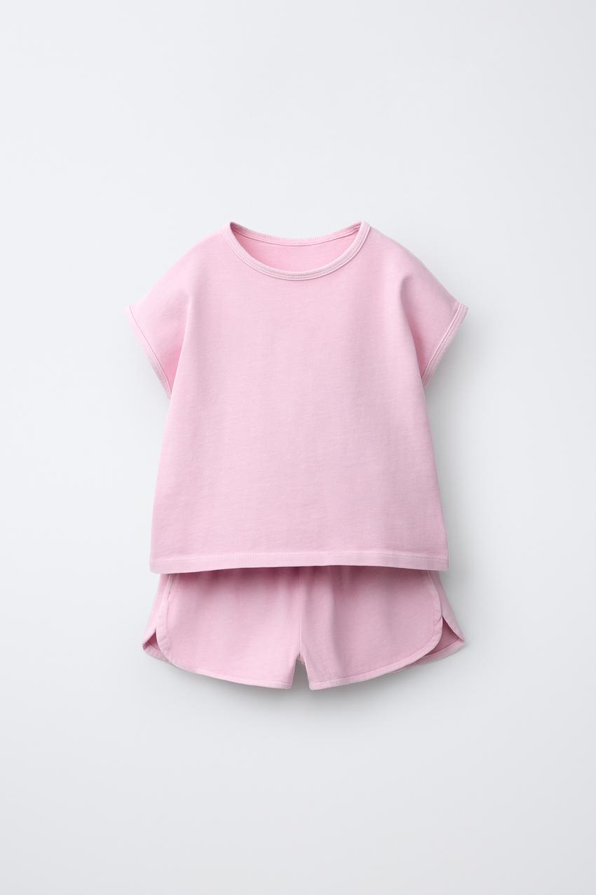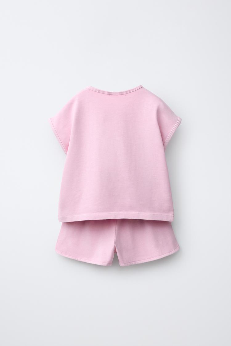 ZARA КОМПЛЕКТ ИЗ ФУТБОЛКИ И ШОРТОВ-БЕРМУДОВ, ЦВЕТ РОЗОВОГО ДЕРЕВА