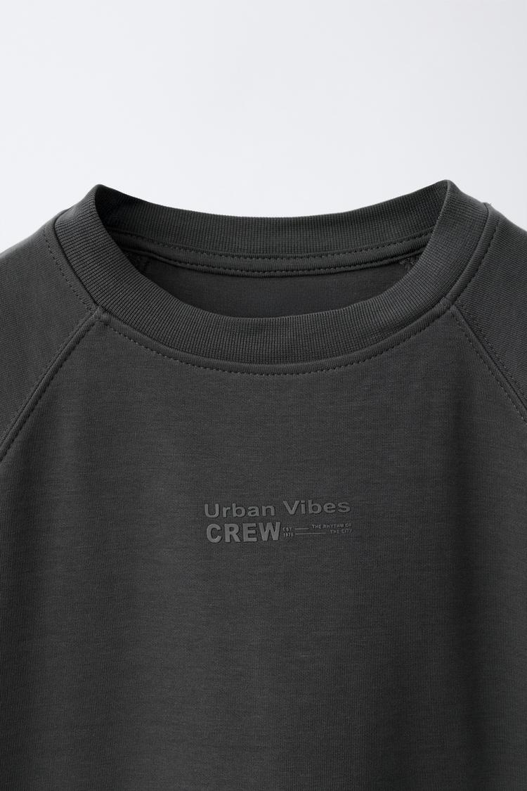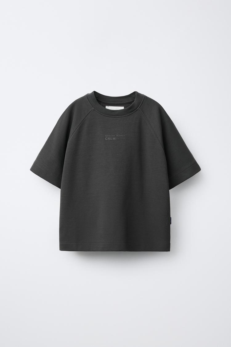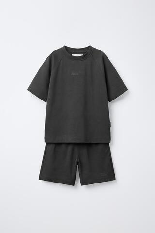 ZARA КОМПЛЕКТ ИЗ ФУТБОЛКИ И ШОРТОВ ИЗ ИНТЕРЛОКА, ТЕМНЫЙ АНТРАЦИТ