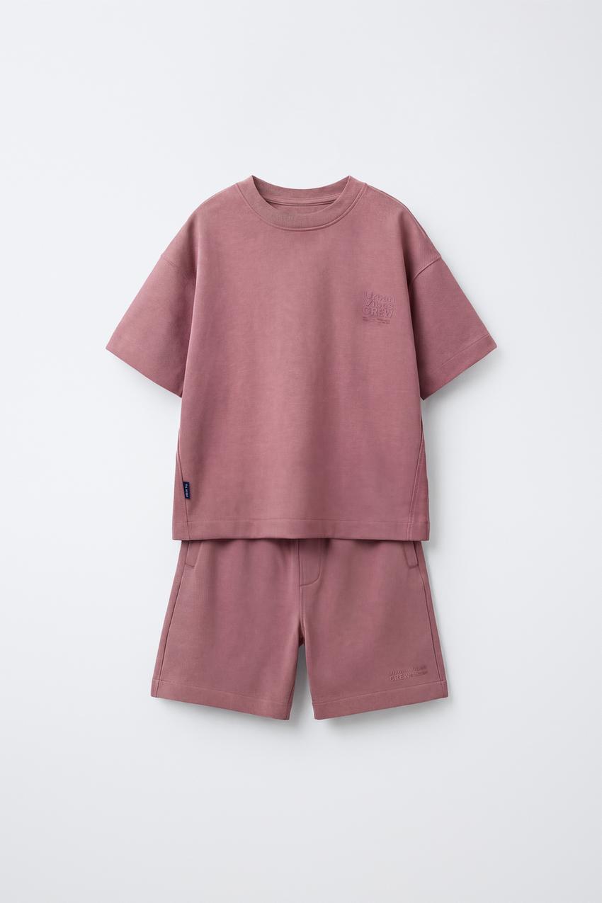 ZARA КОМПЛЕКТ ИЗ ФУТБОЛКИ И ШОРТОВ ИЗ ТКАНИ ИНТЕРЛОК, ЦВЕТ РОЗОВОГО ДЕРЕВА