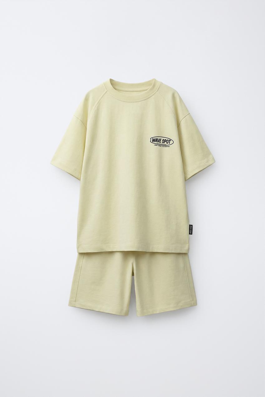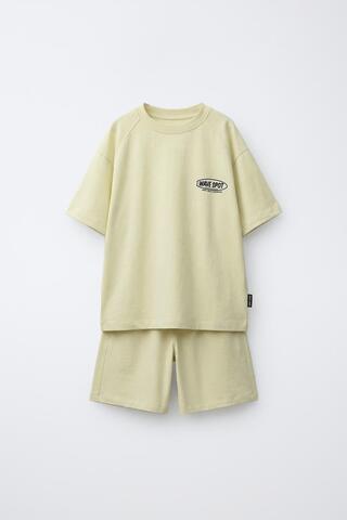 ZARA КОМПЛЕКТ ИЗ ФУТБОЛКИ И ШОРТОВ, ЛАЙМОВЫЙ