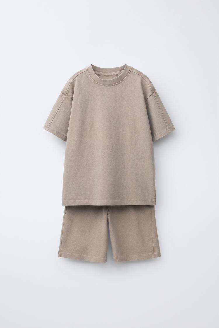 ZARA КОМПЛЕКТ ИЗ ФУТБОЛКИ И ШОРТОВ, РЫЖЕВАТО-КОРИЧНЕВЫЙ