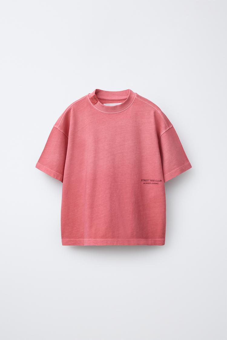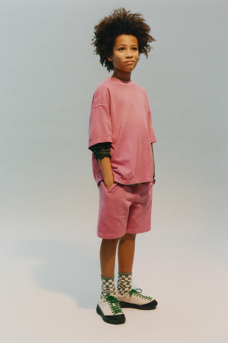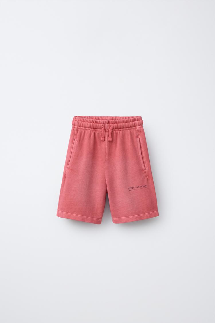 ZARA КОМПЛЕКТ ИЗ ФУТБОЛКИ И ШОРТОВ С НАДПИСЬЮ, КРАСНЫЙ