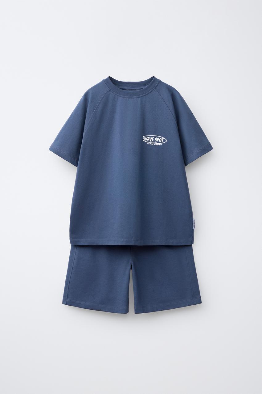ZARA КОМПЛЕКТ ИЗ ФУТБОЛКИ И ШОРТОВ, СИНИЙ