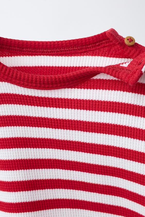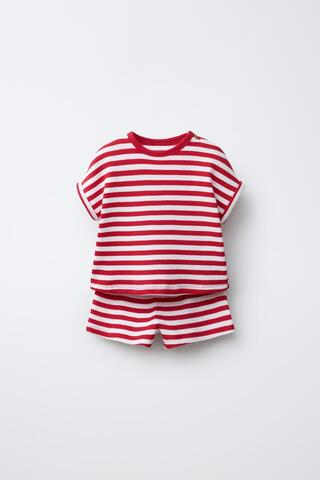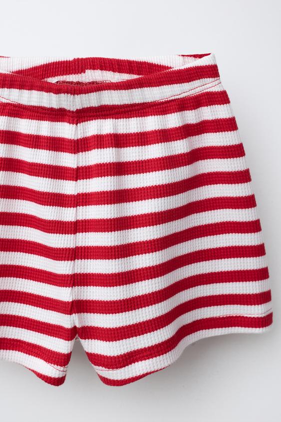 ZARA КОМПЛЕКТ ИЗ ФУТБОЛКИ И ШОРТОВ WAYAS WAFFLE, КРАСНЫЙ