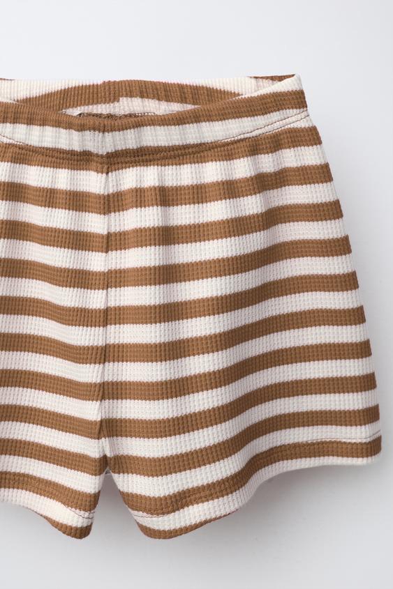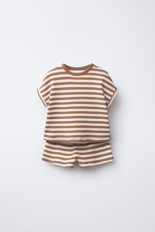 ZARA КОМПЛЕКТ ИЗ ФУТБОЛКИ И ШОРТОВ WAYAS WAFFLE, СВЕТЛО-КОРИЧНЕВЫЙ