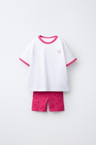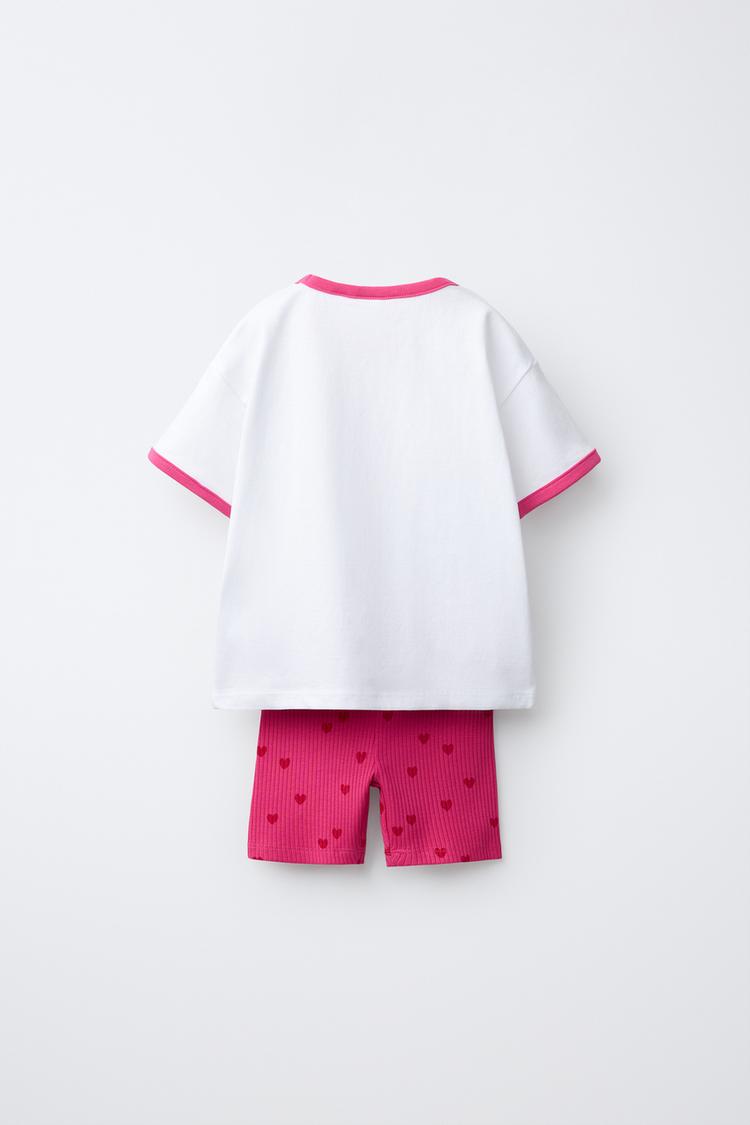 ZARA КОМПЛЕКТ ИЗ ФУТБОЛКИ И ВЕЛОСИПЕДОК С ЦВЕТОЧНЫМ ПРИНТОМ, БЕЛЫЙ