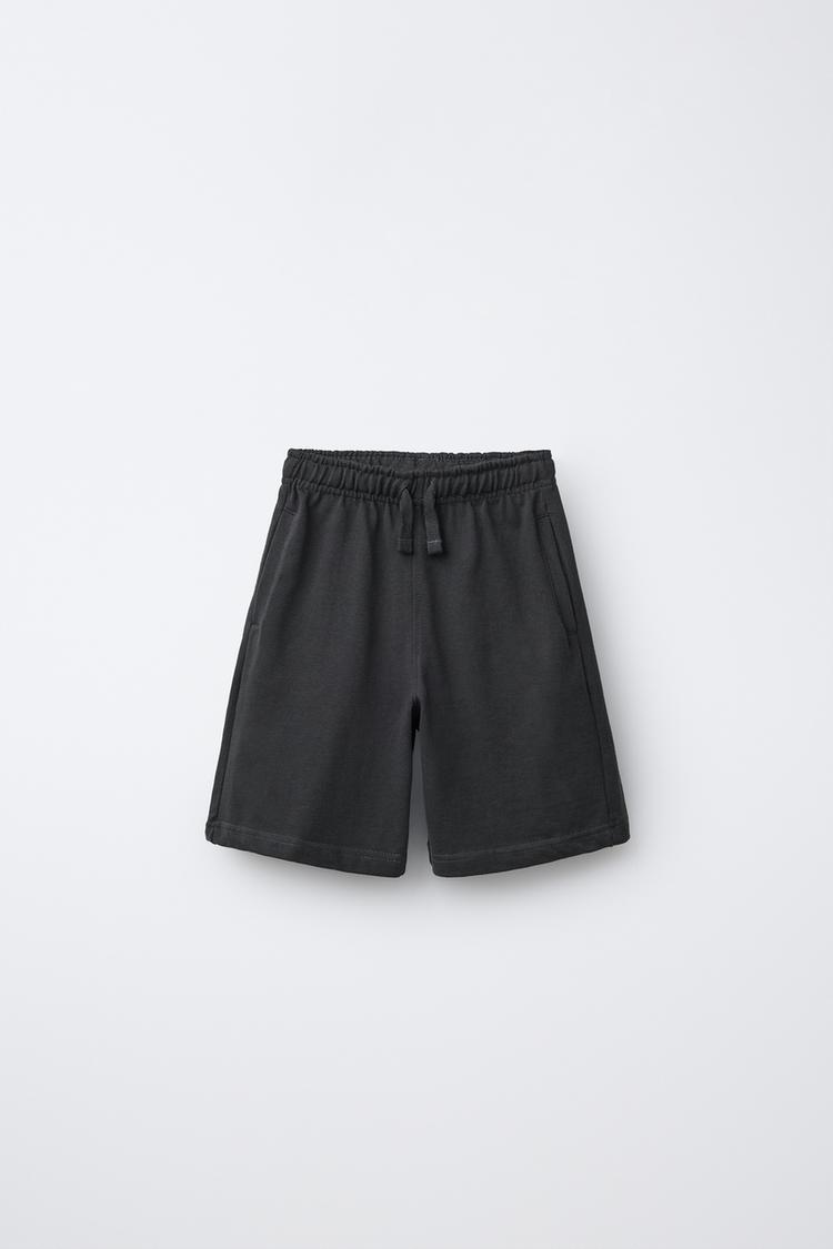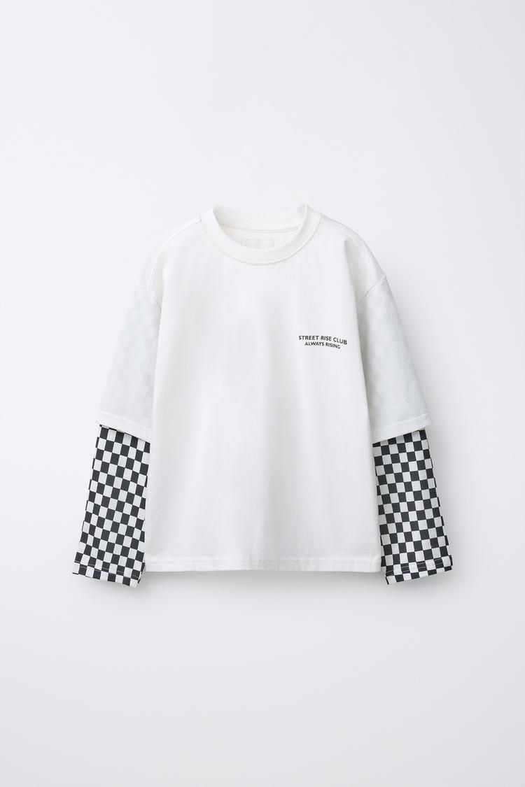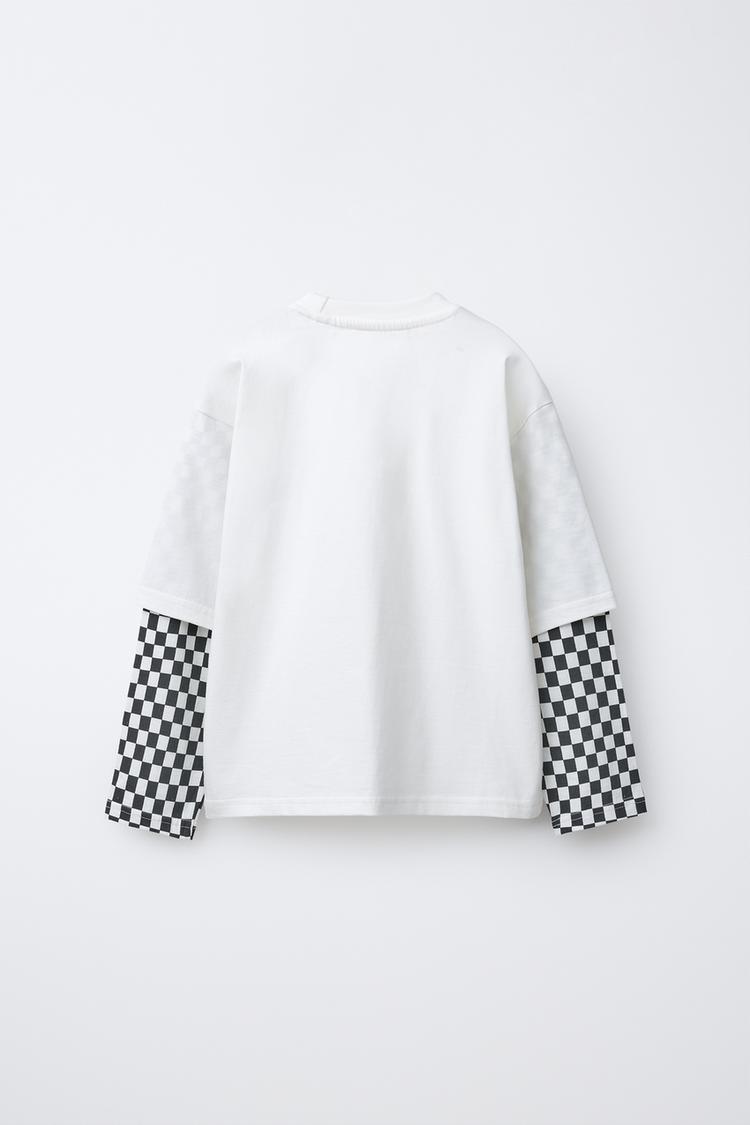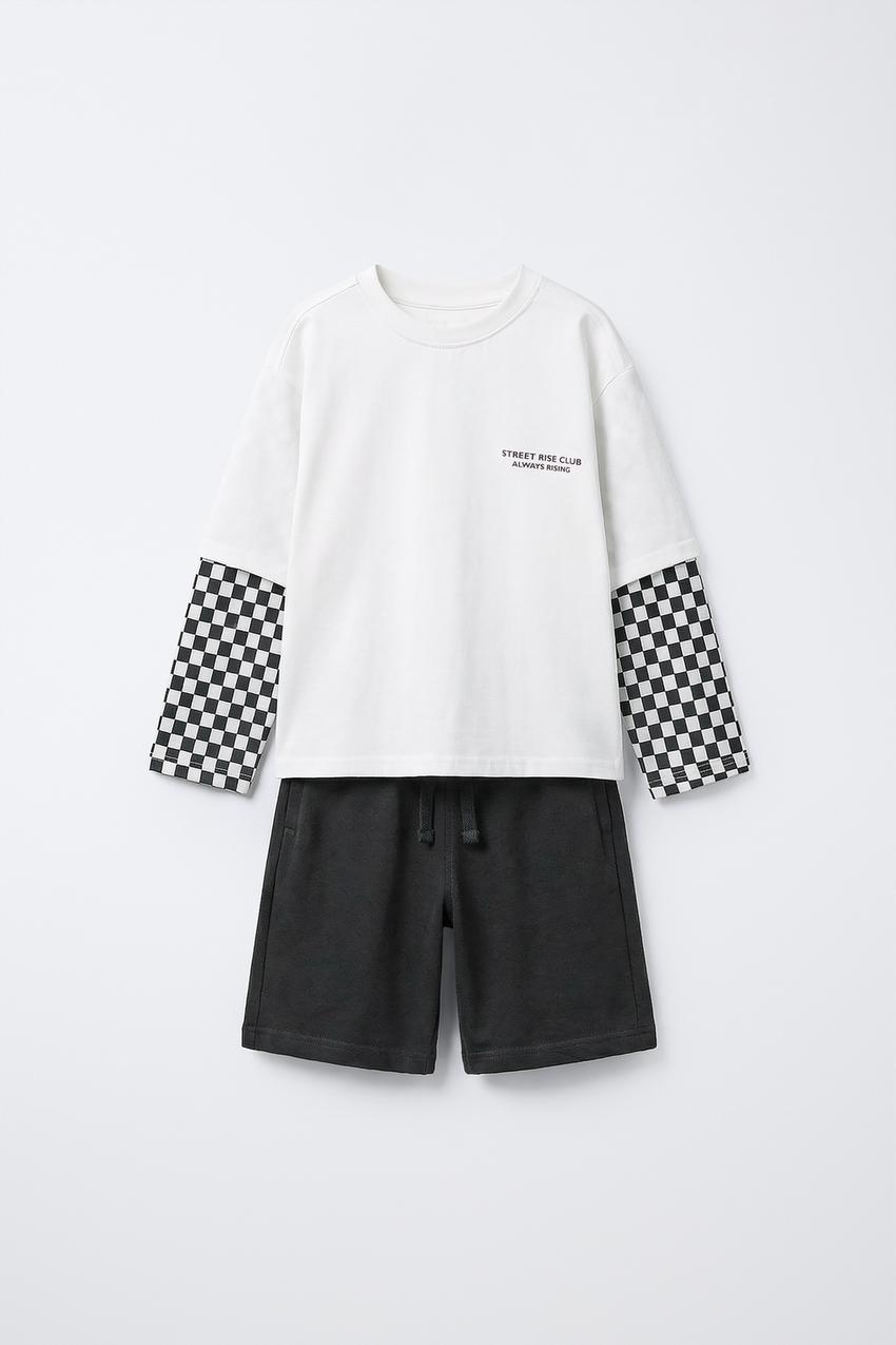 ZARA КОМПЛЕКТ ИЗ ФУТБОЛКИ С ДВОЙНЫМИ РУКАВАМИ И ШОРТОВ В ШАХМАТНУЮ КЛЕТКУ, ТЕМНЫЙ АНТРАЦИТ