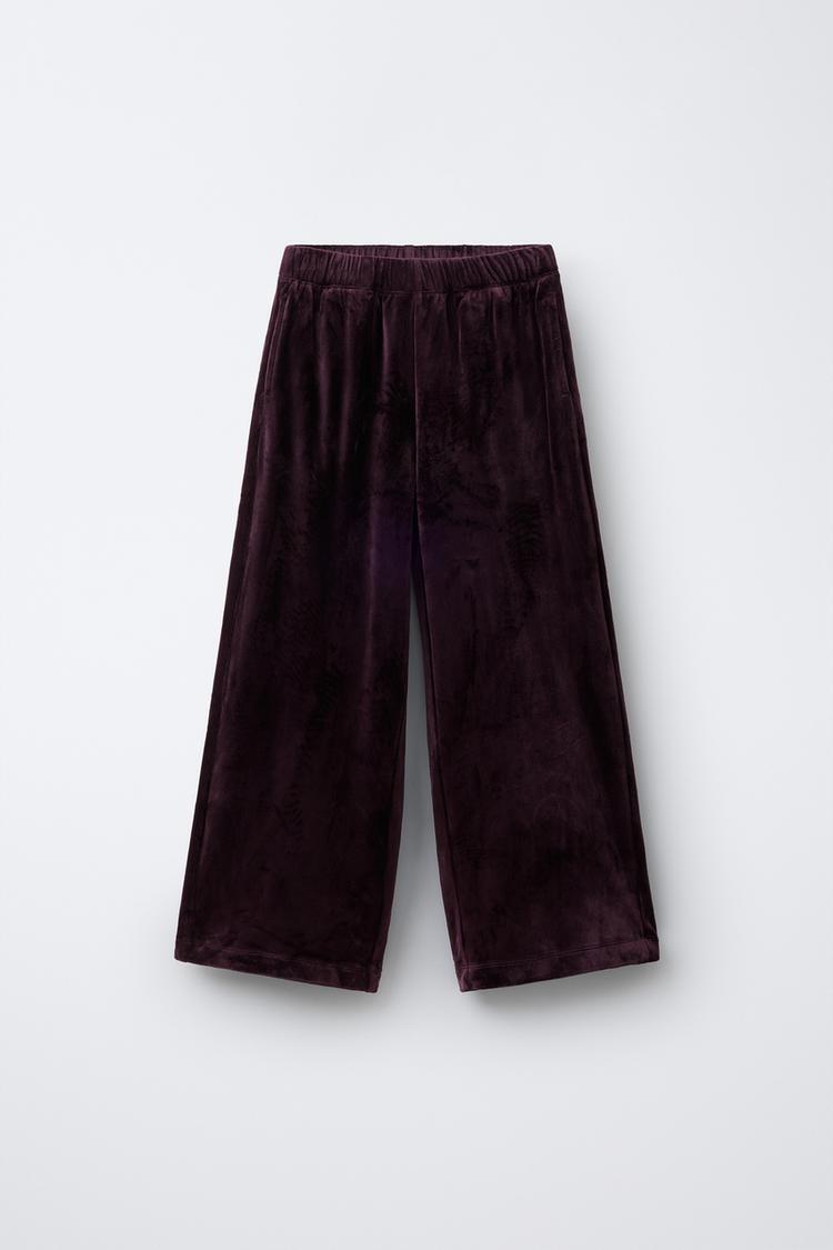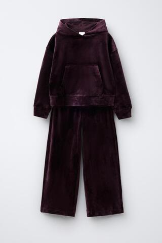 ZARA КОМПЛЕКТ ИЗ ХУДИ И БРЮК WIDE LEG ИЗ ВЕЛЮРА, СЛИВОВЫЙ