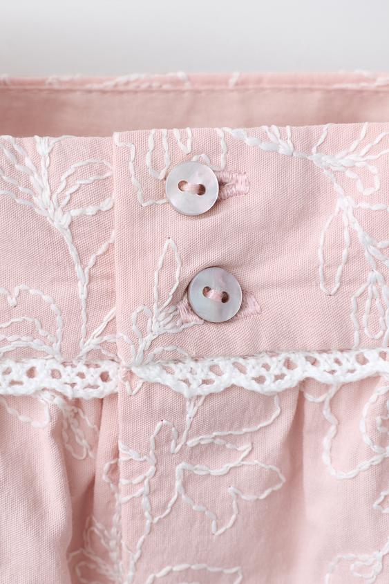 ZARA КОМПЛЕКТ ИЗ РУБАШКИ И ТРУСИКОВ С ВЫШИВКОЙ И КРУЖЕВОМ, ПАСТЕЛЬНО-РОЗОВЫЙ