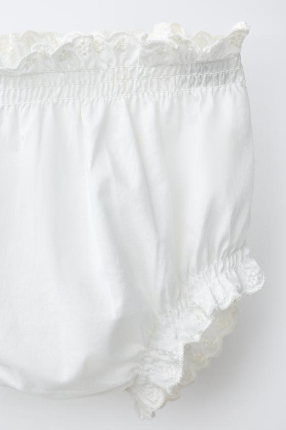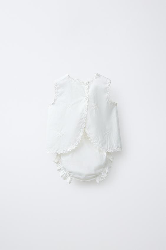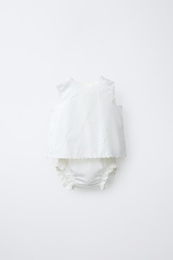ZARA КОМПЛЕКТ ИЗ РУБАШКИ И ТРУСОВ С ВЫШИВКОЙ, БЕЛЫЙ