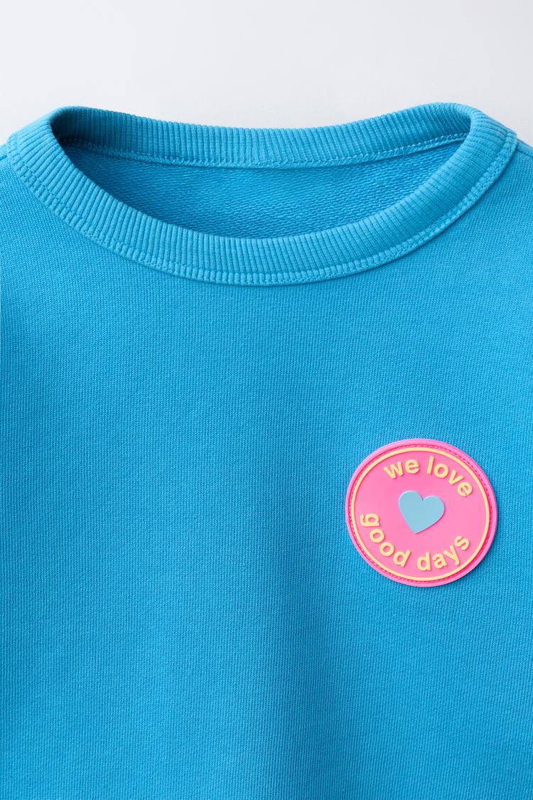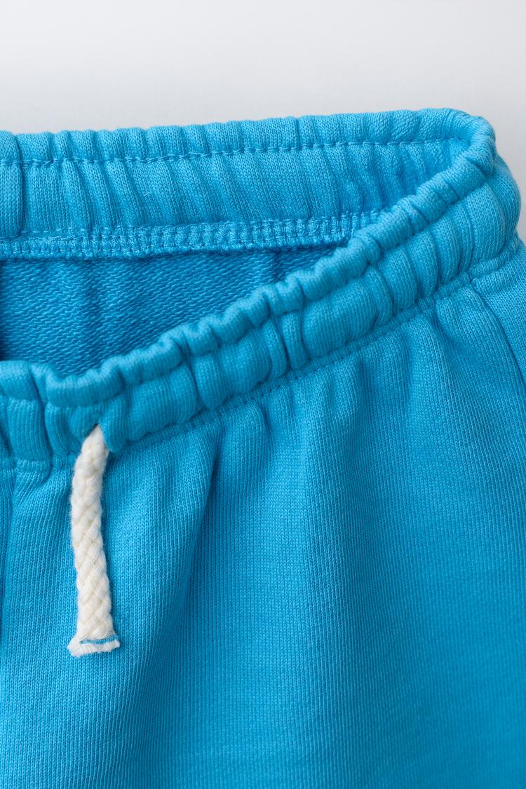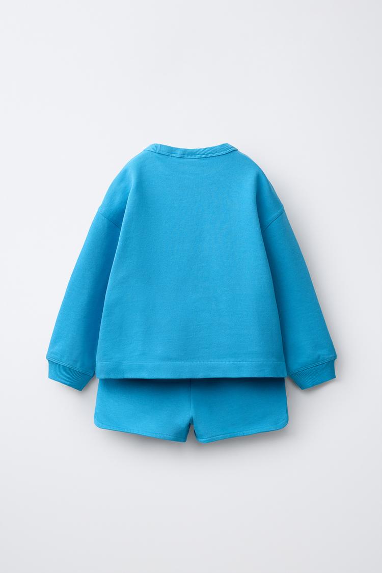 ZARA КОМПЛЕКТ ИЗ ТОЛСТОВКИ И БЕРМУДОВ С ПРОРЕЗИНЕННОЙ НАШИВКОЙ, ГОЛУБОЙ