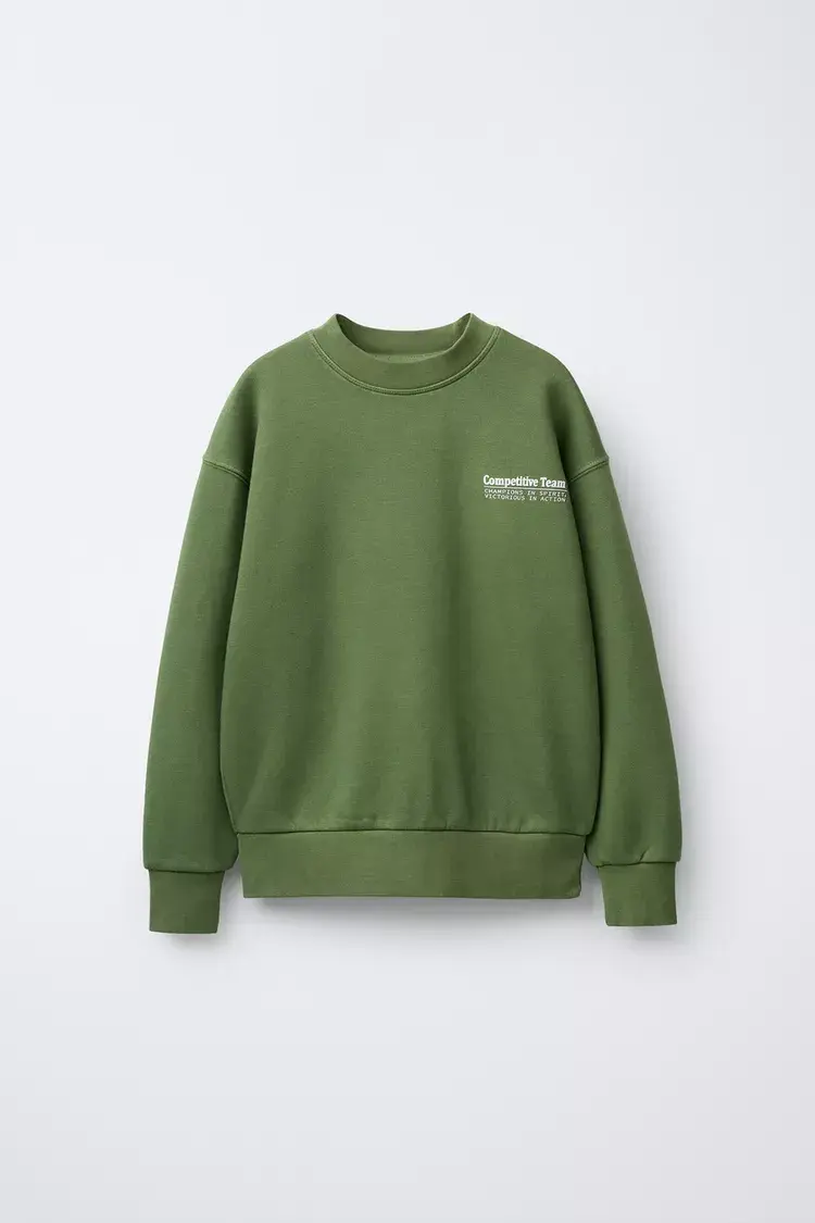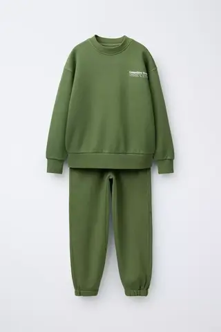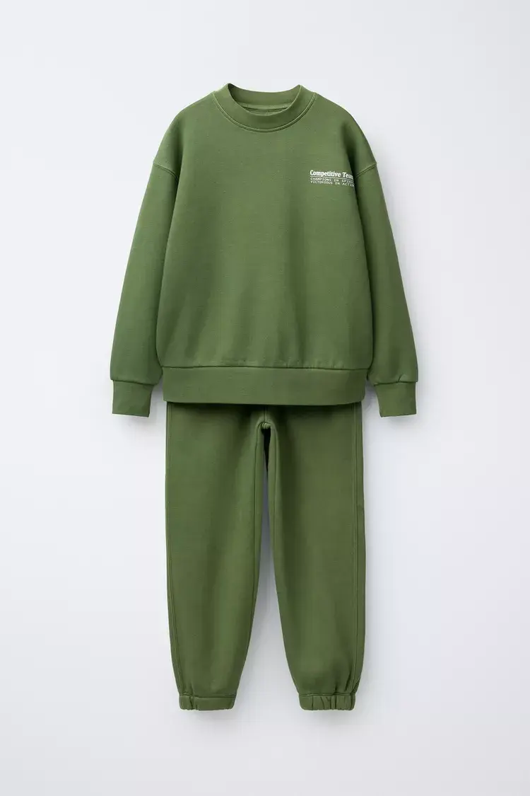 ZARA КОМПЛЕКТ ИЗ ТОЛСТОВКИ И БРЮК-ДЖОГГЕРОВ GARMENT DYE, ЗЕЛЕНЫЙ