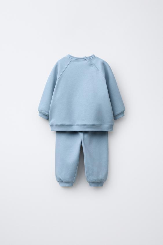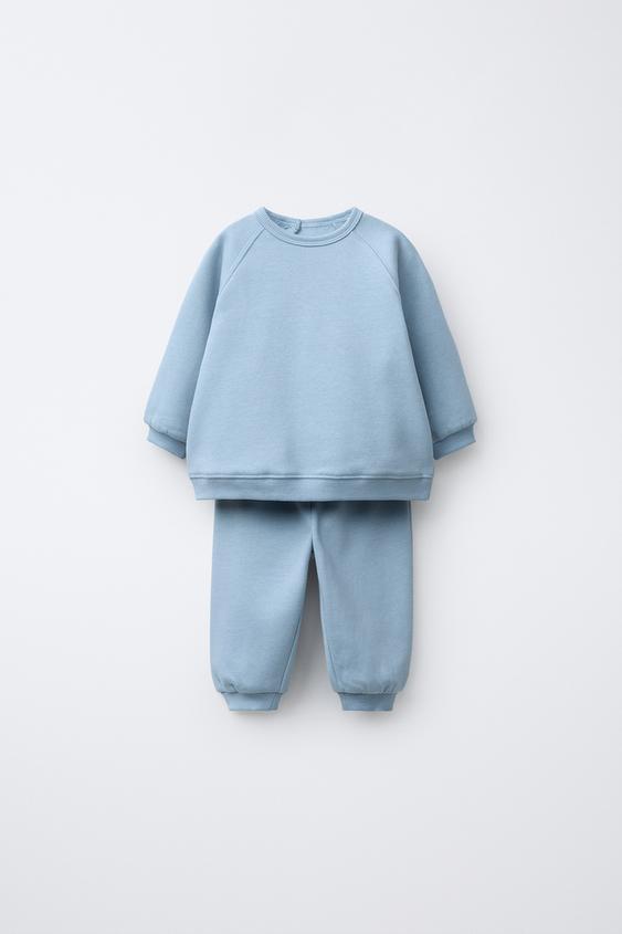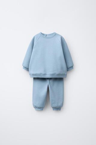 ZARA КОМПЛЕКТ ИЗ ТОЛСТОВКИ И БРЮК-ДЖОГГЕРОВ, ГОЛУБОЙ
