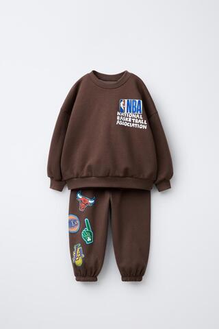 ZARA КОМПЛЕКТ ИЗ ТОЛСТОВКИ И БРЮК-ДЖОГГЕРОВ NBA — MULTI TEAMS, КОРИЧНЕВЫЙ