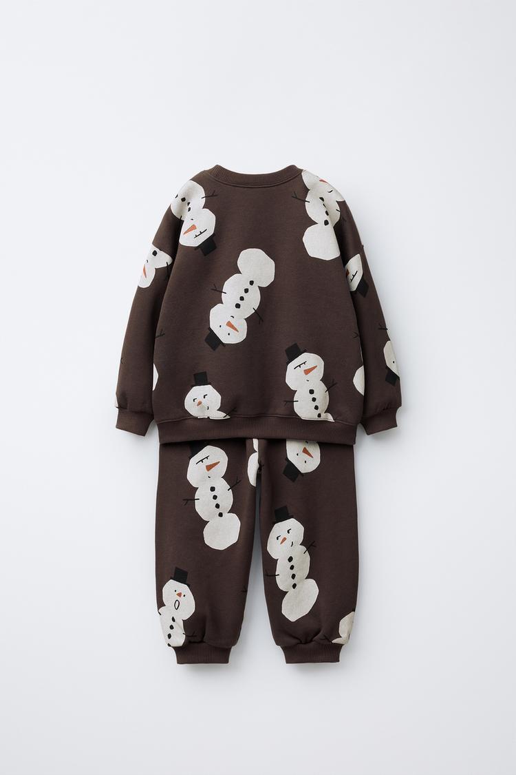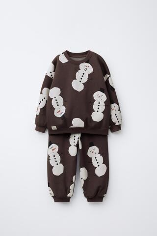 ZARA КОМПЛЕКТ ИЗ ТОЛСТОВКИ И БРЮК-ДЖОГГЕРОВ С ПРИНТОМ, КОРИЧНЕВЫЙ